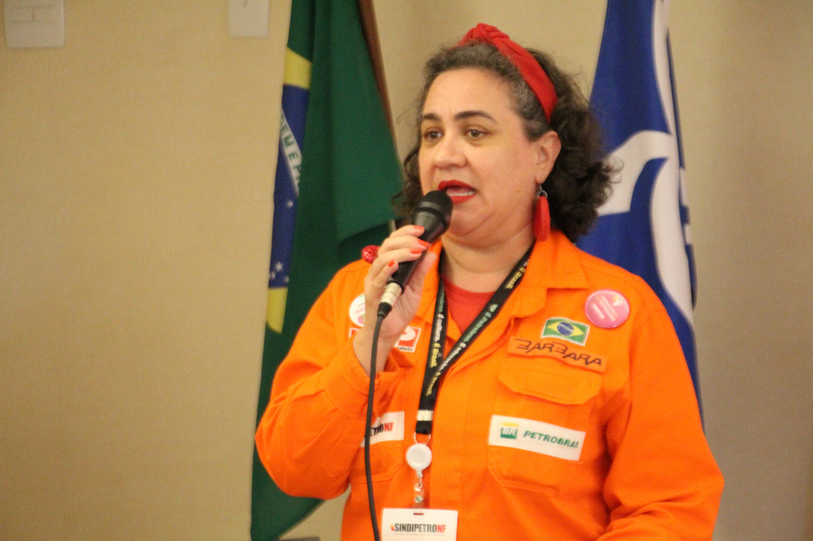 A diretora do Sindipetro-NF, Bárbara Bezerra, que além de petroleira é antropóloga, apresentou à plenárias noções de Cultura, Gênero e Trabalho, demonstrando como o machismo é uma construção histórica. Na Petrobrás, destaca, 17% da força de trabalho é formada por mulheres, sendo que apenas 9% nas gerências (nas plataformas, são ainda mais raras: menos de 3%).