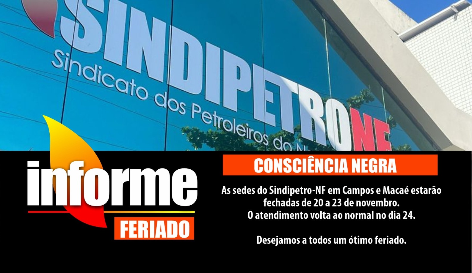 Sedes do Sindipetro-NF não abrem no período de 20 a 23 de novembro