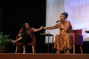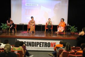A importância do respeito e da tolerância na sociedade foram debatidas na Roda de Conversa “Tolerância Zero, Vamos Soltar a Voz” que aconteceu na noite do dia 13 de março, na sede do Sindipetro-NF. A atividade foi conduzida pela diretora do sindicato e da FUP, Bárbara Bezerra e contou com a participação da deputada estadual, Elika Takimoto, a vereadora do PT de Macaé Leandra Lopes e a cantora Andrea Martins.