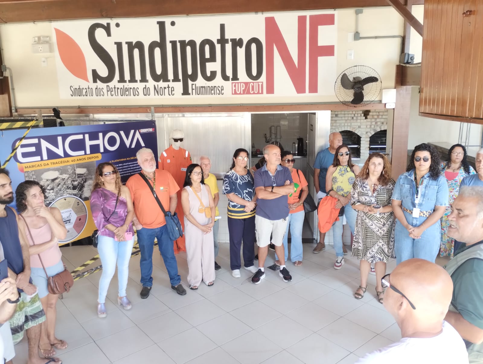 Aberta na manhã de hoje a exposição “Enchova: Marcas da tragédia – 40 anos depois”, na sede do Sindipetro-NF em Campos dos Goytacazes. O momento da abertura contou com presenças de sobreviventes do acidente, diretores sindicais, assessorias e muitos aposentados, aposentadas e pensionistas que atuavam ou acompanhavam o mundo do petróleo na década de 80 do século passado. O acidente aconteceu em 16 de agosto de 1984 e deixou 37 mortos e 19 feridos.