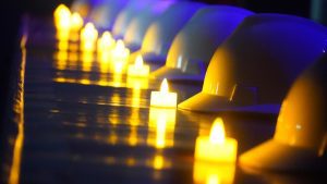 Ao final da apresentação, o silêncio tomou conta do auditório. Um a um, os nomes dos petroleiros mortos foram lidos. A cada nome, uma vela era acesa diante dos capacetes, transformando o espaço em um memorial de luz e memória.
