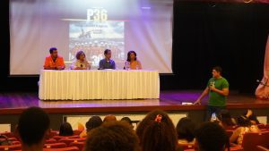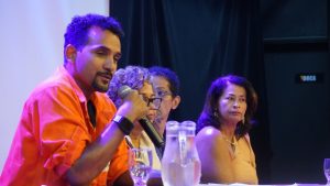 Ainda impactado pela encenação, o público acompanhou a formação da mesa de debate que reuniu o coordenador do Departamento de Saúde do Sindipetro-NF, Alexandre Vieira, a assistente social Maria das Graças Alcântara da Costa Rocha, o professor da UFF Marcelo Figueiredo e Luzineide Maria de Santana Lima, viúva do petroleiro Emanoel Portela Lima.