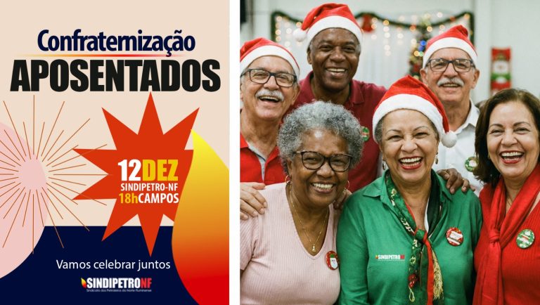 Os aposentados e pensionistas do Sindipetro-NF já têm data marcada para celebrar mais um ano de história, luta e união. A tradicional confraternização de fim de ano da categoria acontece no dia 12 de dezembro de 2025, às 18h, na sede do Sindicato em Campos.
