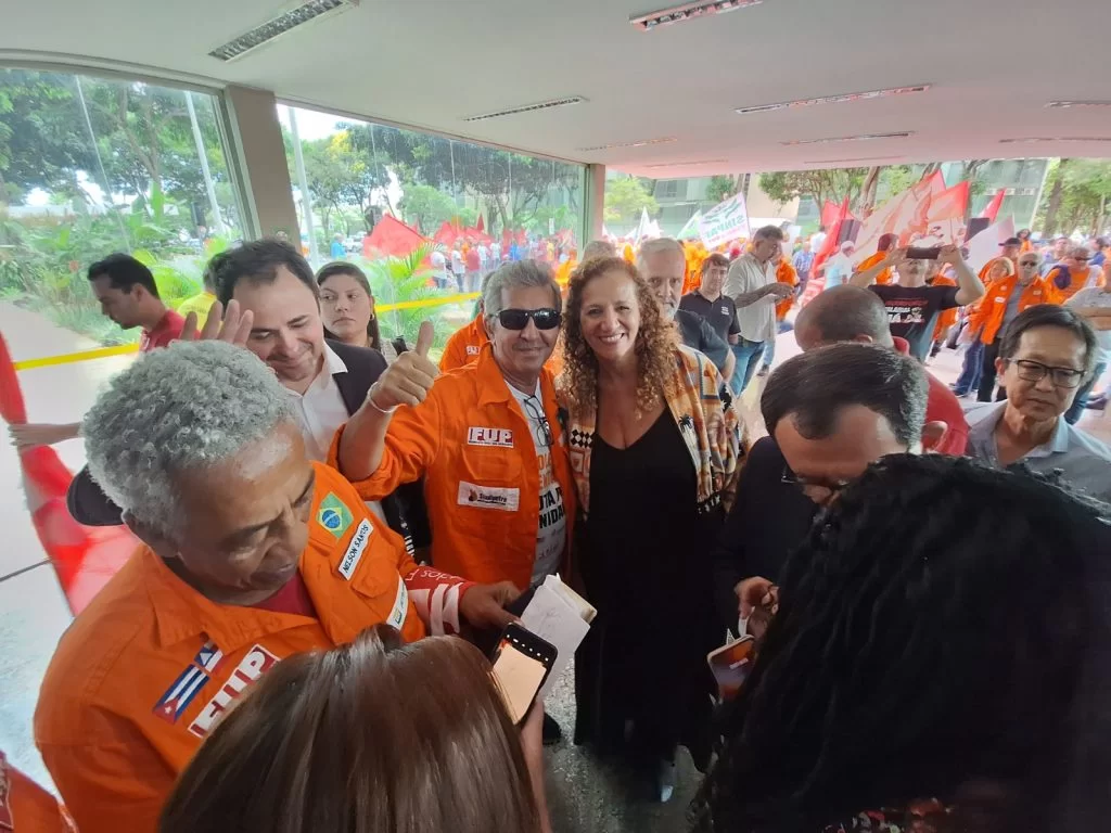 Os deputados federais Glauber Braga (PSOL/RJ) e Jandira Feghali (PCdoB/RJ) também compareceram ao ato e, junto com Reimont, acompanharam as representações sindicais na reunião com a SEST. Estiverem presentes a FUP, a FNP, o Sindicato Nacional dos Moedeiros, a Fentect (trabalhadores dos Correios), o Sinpaf (trabalhadores da Embrapa e Codevasf), a Fenae (bancários da CEF), a FNSTP (portuários), além de representantes da CUT nacional e da CUT DF.