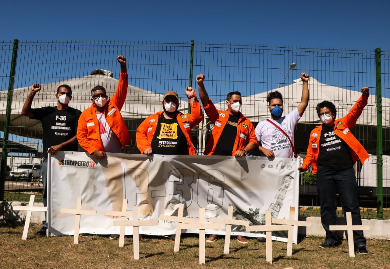 O Sindipetro-NF realizou na manhã de hoje, no Heliporto do Farol de São Thomé, em Campos dos Goytacazes, um ato público para lembrar a passagem dos 21 anos da tragédia da P-36, a então maior plataforma do mundo, que foi atingida por explosões em uma das suas colunas, em 15 de março de 2001, e afundou dias depois. Onze trabalhadores morreram no acidente.