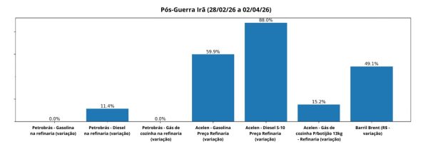 Desde o início da guerra dos EUA e Israel contra o Irã, em 28/2, a Acelen, que comprou a refinaria da Bahia em 2021, reajustou o diesel em 88%, a gasolina em  quase 60% e o gás de cozinha em 15,2%. No mesmo período, a Petrobrás não reajustou os preços da gasolina e do gás de cozinha e elevou em 11,4% o preço do diesel.