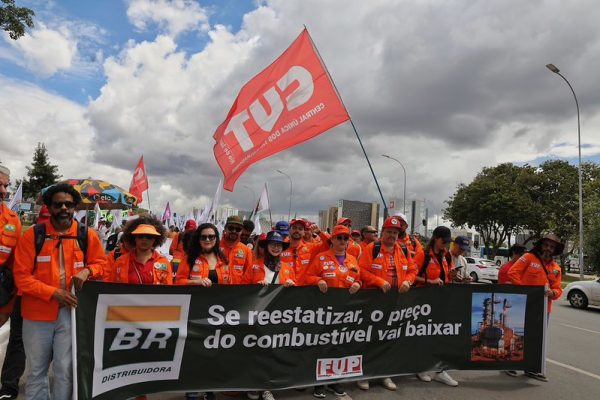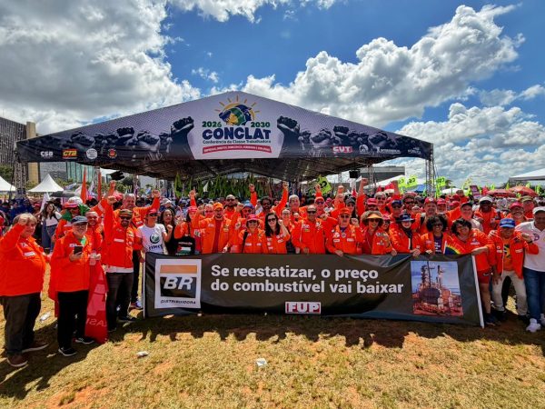 Carregando uma faixa gigante que reivindicava a reestatização da BR Distribuidora e das refinarias privatizadas no governo Bolsonaro, delegações de petroleiros e petroleiras de vários sindicatos da FUP marcaram presença na mobilização convocada pelas centrais sindicais. Com seus jalecos laranja, dirigentes sindicais e militantes marcharam pela Esplanada dos Ministérios, entoando palavras de ordem contra a escala 6×1 e em defesa da soberania energética e do fortalecimento da integração do Sistema Petrobrás.