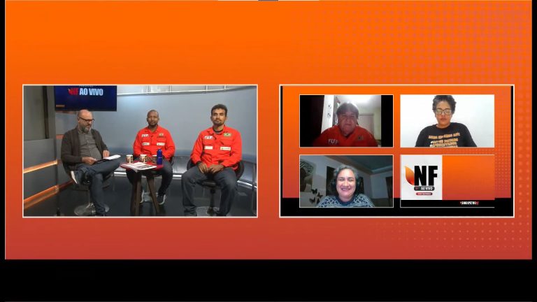 A edição desse mês contou com as participações dos diretores e diretoras Sérgio Borges (coordenador geral do NF e diretor da FUP), Jancileide Morgado (diretora no Setor Privado do NF), Marcos Botelho (diretor no Departamento de Aposentados do NF), Bárbara Bezerra (coordenadora do Departamento de Cultura e Suplente da FUP) e Alexandre Vieira (coordenador do Departamento de Saúde do NF), na conversa mediada pelo jornalista Vitor Menezes.