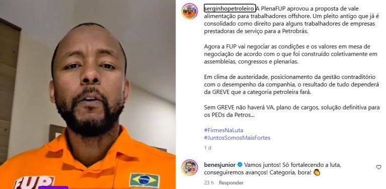 Sobre o VA para trabalhadores offshore, o coordenador lembra que é um pleito antigo que já é consolidado como direito para alguns trabalhadores de empresas prestadoras de serviço para a Petrobrás, e que agora a FUP vai negociar as condições e os valores em mesa de negociação de acordo com o que foi construído coletivamente em assembleias, congressos e plenárias.