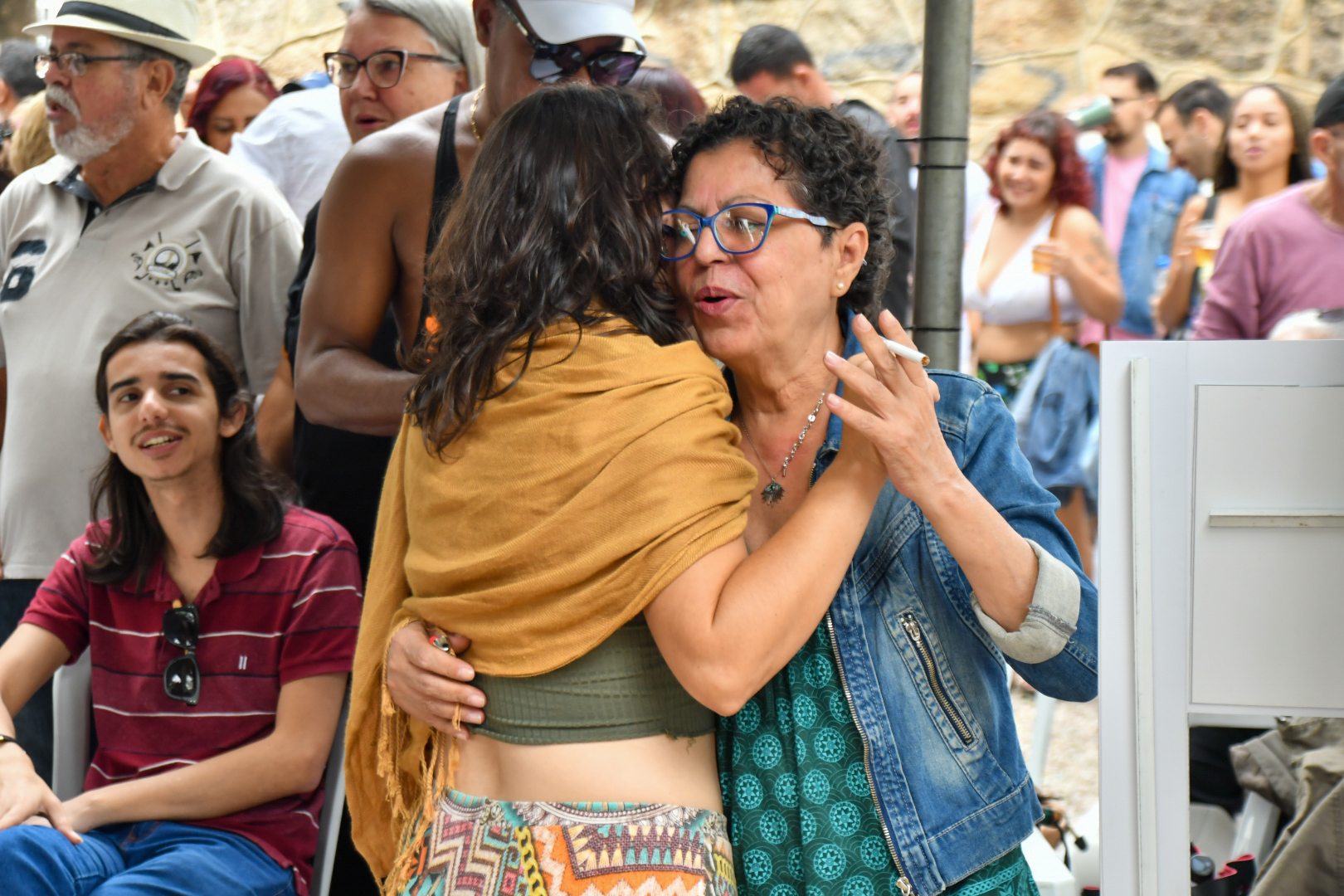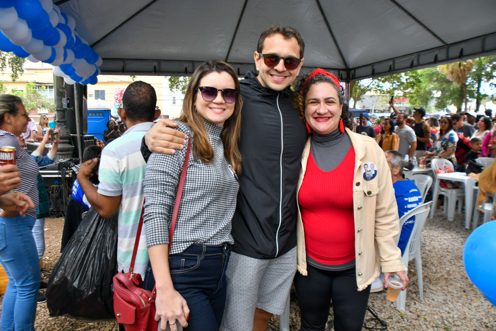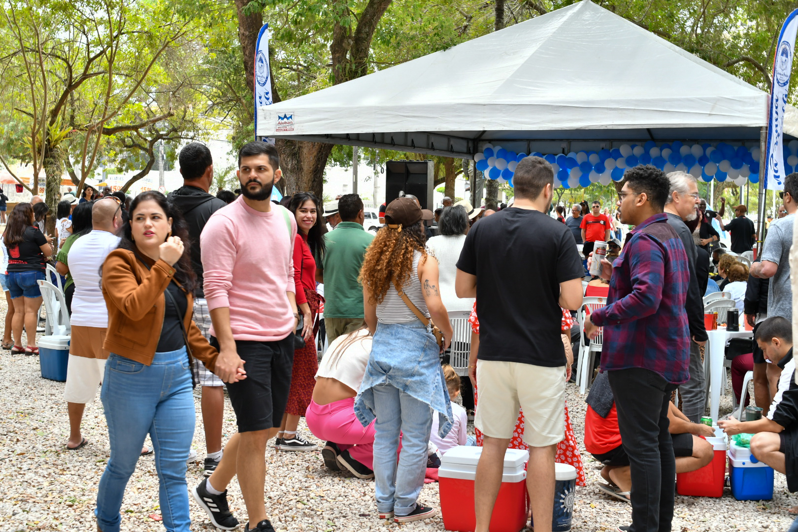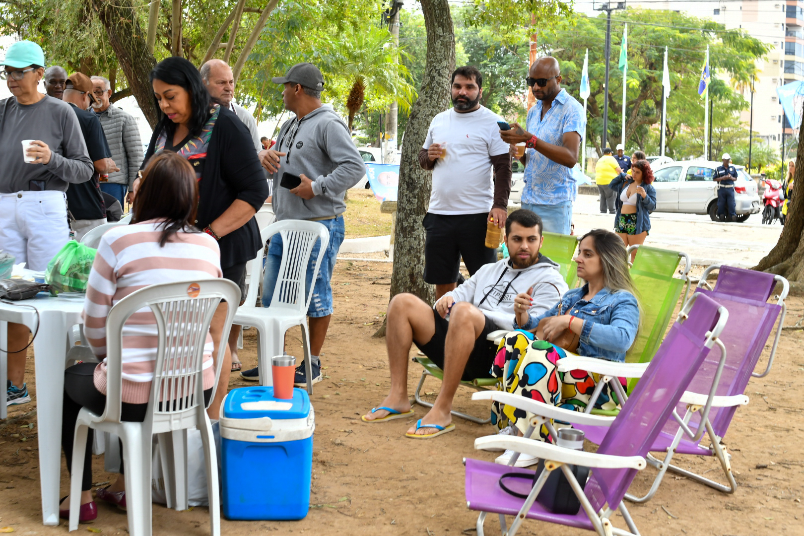 Mas a praça é democrática e quem não quiser comprar no local também pode levar de casa. É o que preferem fazer Carlos Vitor Silva, 43 anos, e a esposa Jane Viana de Sá, 42 anos, com a filha Caroline Viana Silva, 24 anos, e a amiga Kedna Barreto, 37. Eles chegaram cedo, posicionaram mesa, cadeiras, cooler e churrasqueira, e fizeram a própria área vip para curtir o samba de camarote. Pela primeira vez no evento, eles consideram que o projeto traz uma alternativa cultural e de lazer “que nem sempre está acessível às famílias”. “Acho ótimo, música boa é atemporal. É bom para todas as gerações”, celebra Carlos Vitor.