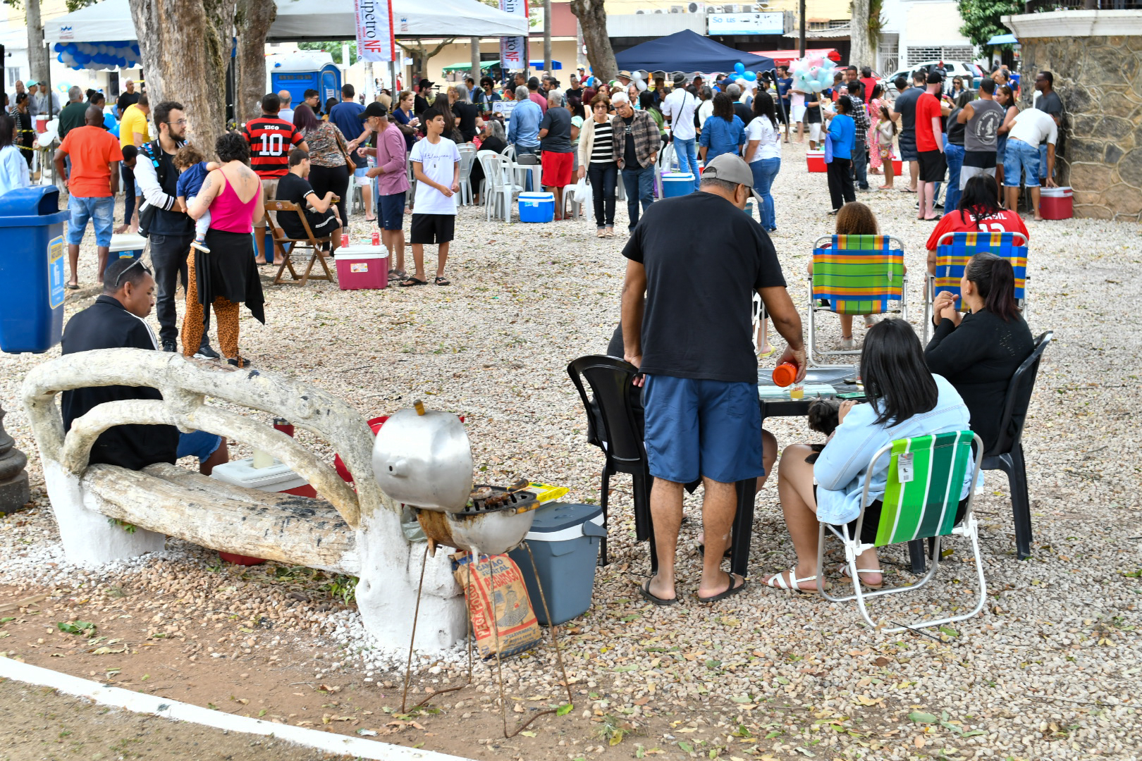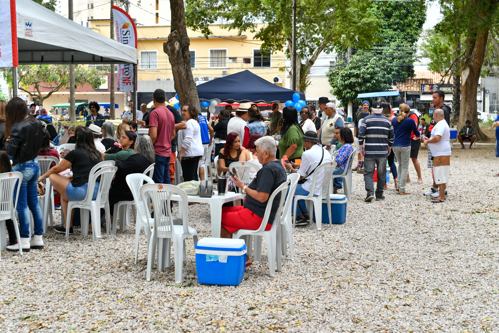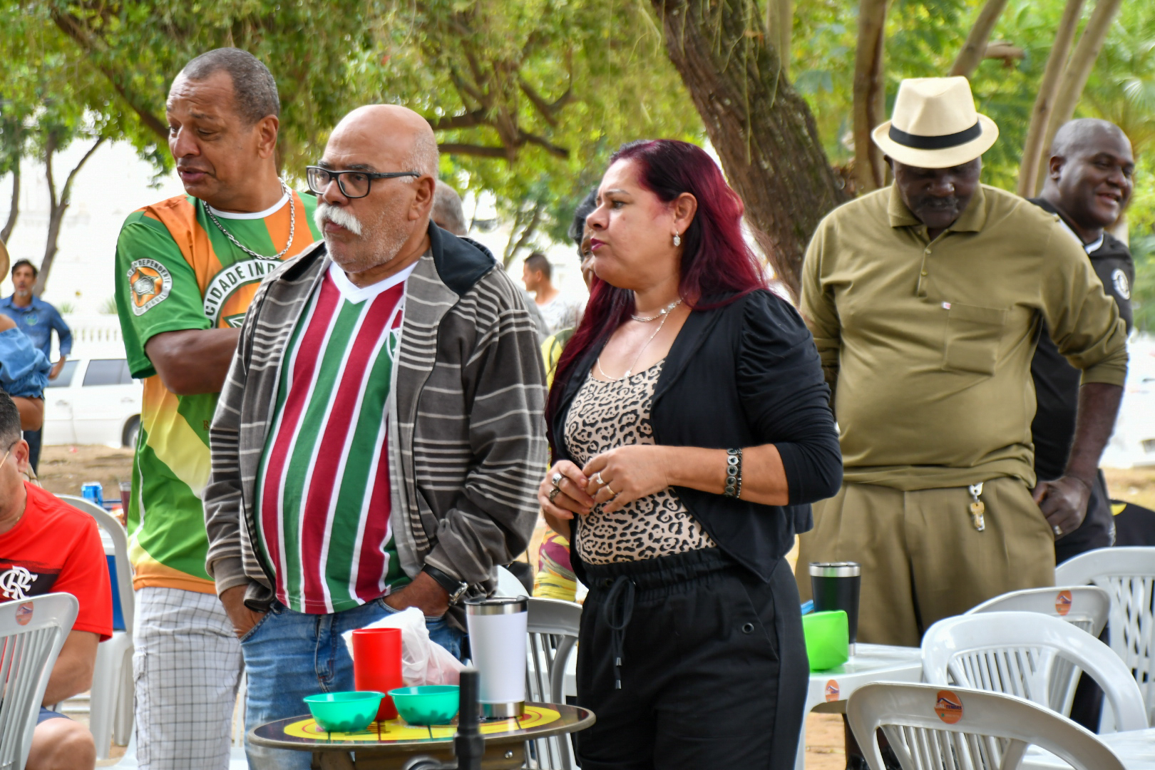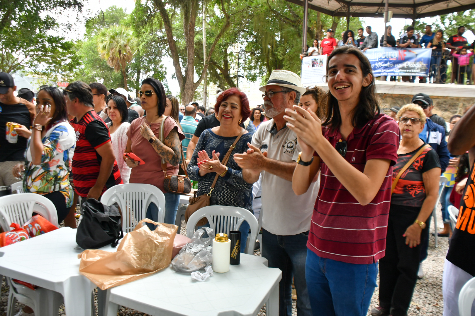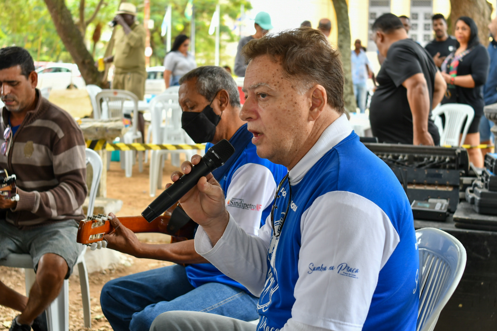 Outra marca é a fidelidade do público e o envolvimento com o samba. É comum encontrar frequentadores com adereços de agremiações carnavalescas e chapéus de bamba. Ostentando com orgulho uma camisa da Mocidade Independente de Padre Miguel, o trabalhador offshore aposentado, Nelson Honorato Fernandes, 64 anos, que atuou até março de 2020 como marinheiro de convés na empresa CBO, que presta serviço à Petrobrás, conta que frequenta o projeto desde o começo e percebeu a grande mudança na estrutura. “Frequento desde a primeira edição e vejo que cresceu e melhorou muito. Virou um marco para a cultura local, não tem como não amar”, afirma, lamentando apenas que as doações poderiam ser maiores: “as pessoas chegam com as mãos abanando, curtem o samba, bebem, e saem abanando o corpo todo”, brinca, enquanto dá o recado sério.