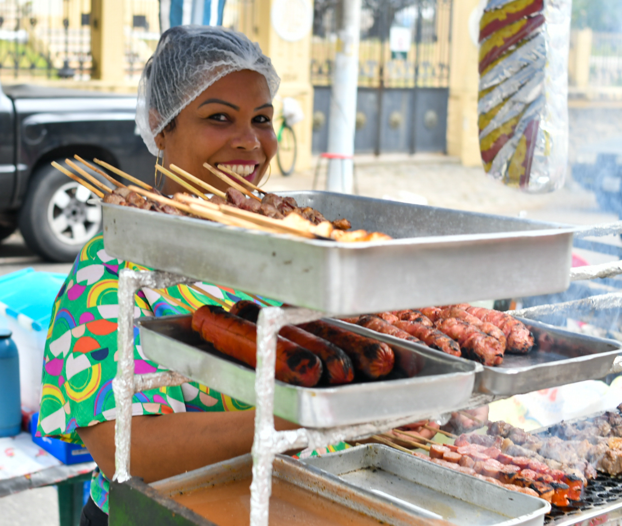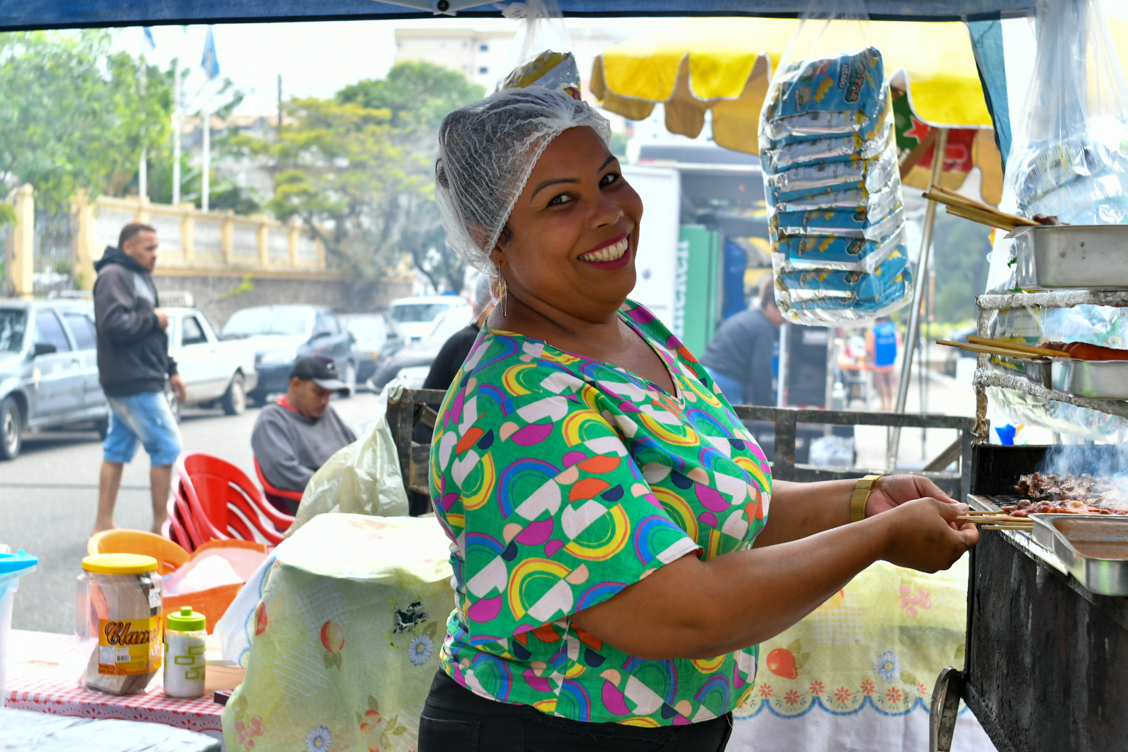 “Minha mãe prepara tudo. Adianta no dia anterior a parte das carnes e, às cinco da manhã do próprio domingo, cozinha os acompanhamentos [arroz, feijão tropeiro, farofa e vinagrete]. Tomamos muito cuidado com a higiene e todo mundo elogia. No início eram só os espetinhos, depois o pessoal começou a pedir refeição também e deu certo”, explica Roberta, uma manicure que afirma “contar os dias” para o terceiro domingo do mês chegar.
