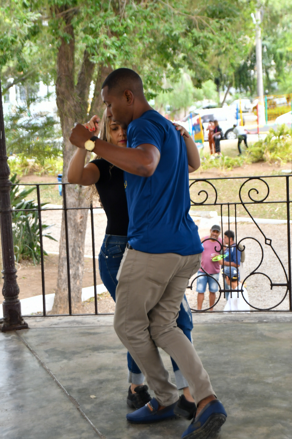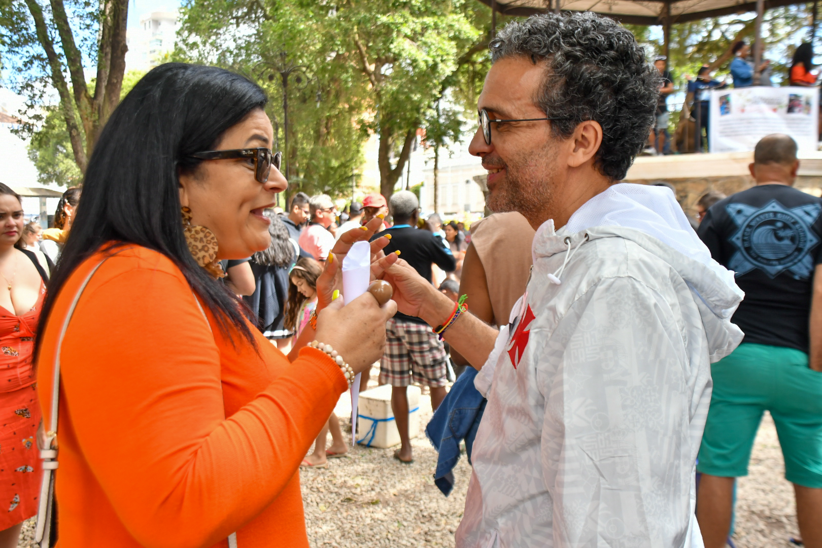 Naquele domingo, mais uma vez, a ancestralidade e a força da cultura negra estavam no ar e nos corpos: nas mãos que faziam vibrar os instrumentos, nas centenas de pés que sambavam nas pedras brancas do chão e no alto do coreto tombado pelo patrimônio histórico, onde o casal Jaqueline Andrade, uma enfermeira de 40 anos, e Naldo Brito, 44 anos, professor de dança, deslizavam em passos tão leves quanto precisos. Todo mundo na cadência do samba enquanto também fazia história.