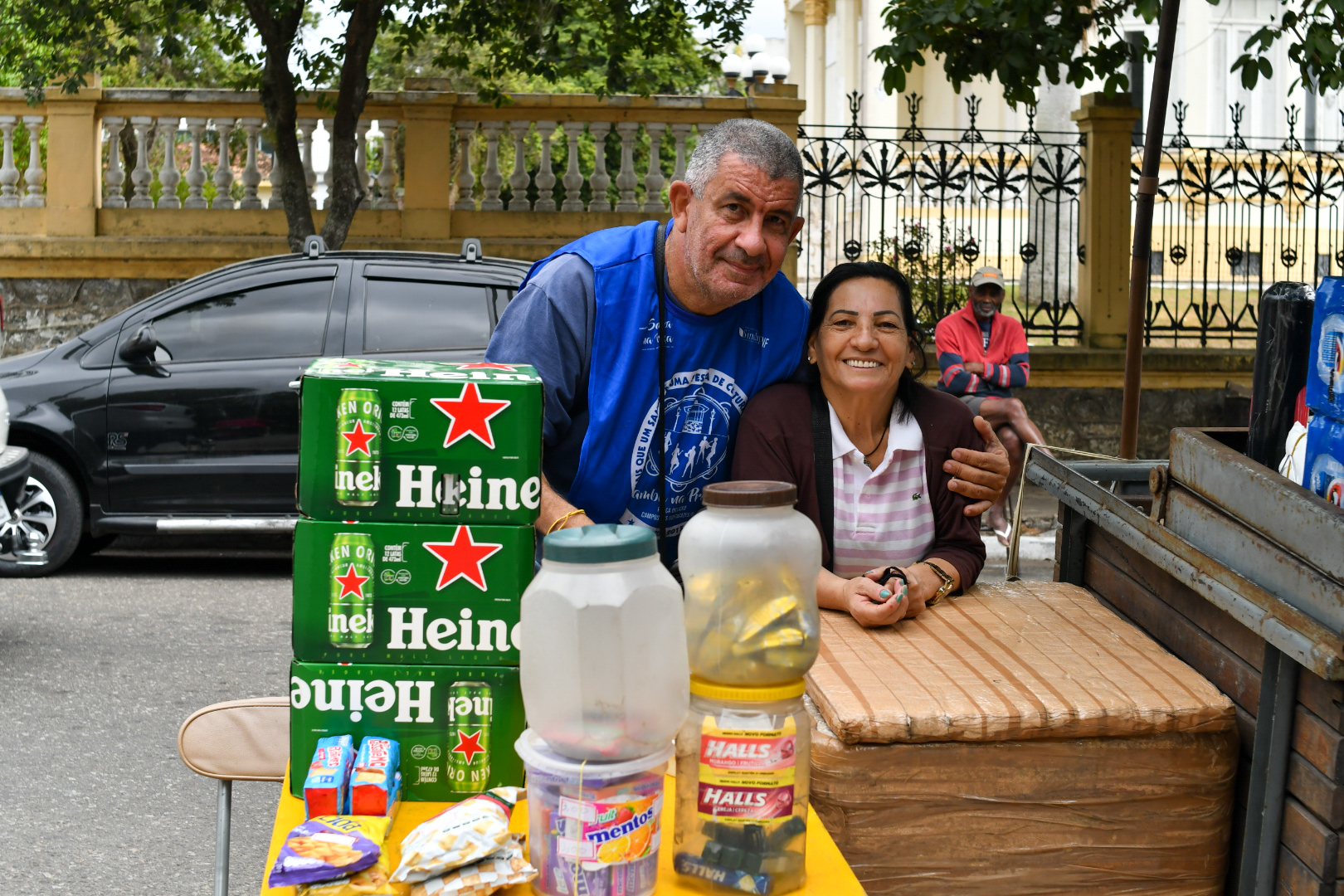 Roberta e sua família estão entre os primeiros a perceberem o potencial do Projeto Samba na Praça não apenas para produzir cultura e lavar a alma de um povo sofrido, mas também para produzir uma renda adicional, quando não única, especialmente nestes últimos anos de um quadro difícil do país. Elas estão entre os primeiros, mas primeiro mesmo foi o ambulante Francisco Ignácio Miranda, que completou 56 anos no dia do evento. Junto com a esposa Salete Azevedo Ribeiro, que vaidosamente não revela a idade, estão no ramo de bebidas e se armaram com oito fardos de latões de cerveja para aquele domingo.