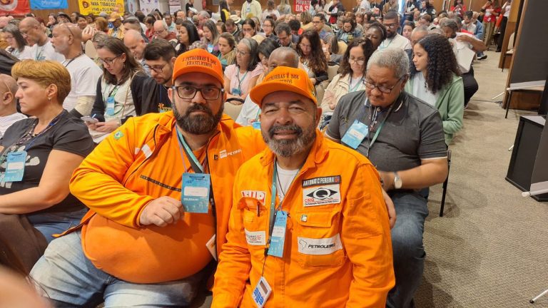O diretor do Sindipetro-NF e conselheiro de Saúde, Benes Junior, e o secretário de Saúde do Trabalhador e da Trabalhadora da Confederação Nacional do Ramo Químico (CNQ), Antônio Carlos Bahia, também integraram a delegação da região na conferência.