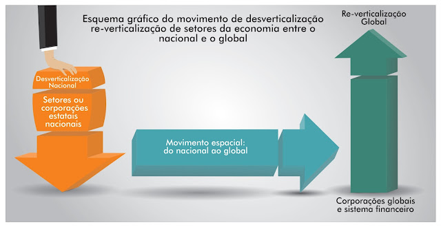A estratégia de Temer (Parente) foi a de desmontar a empresa – que foi fatiada para ser vendida em partes e a preços vil. Na ocasião da postagem sobre a posição da Shell, eu apresentei no mesmo texto, um esquema do processo de desintegração que vem sendo feito na Petrobras e em outros setores de nossa economia em termos de “desverticalização” ou desintegração. O esquema gráfico (veja abaixo) é parte da interpretação de minha pesquisa (tese de doutorado). Em breve resumo o assunto é melhor apresentado e detalhado na postagem de janeiro do blog citada no link acima.