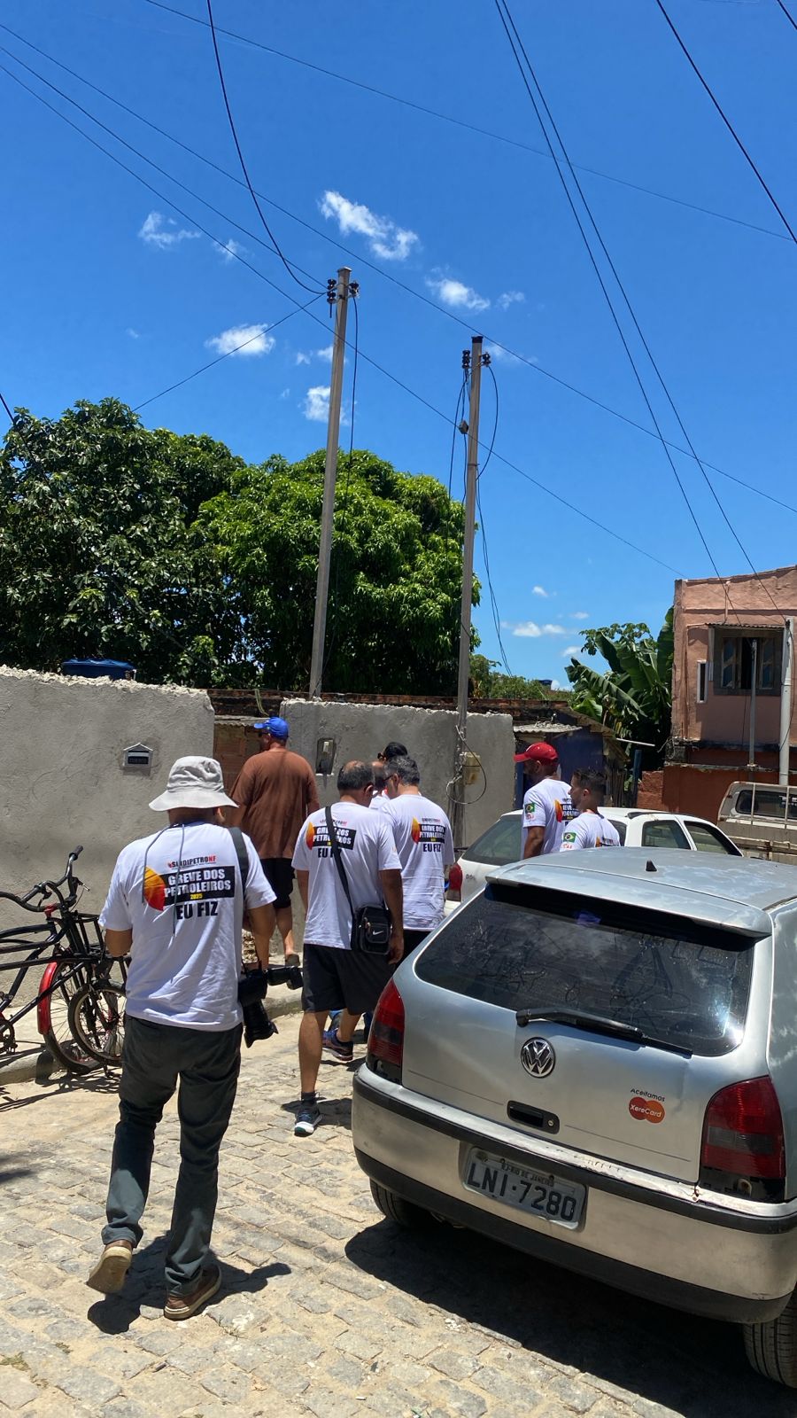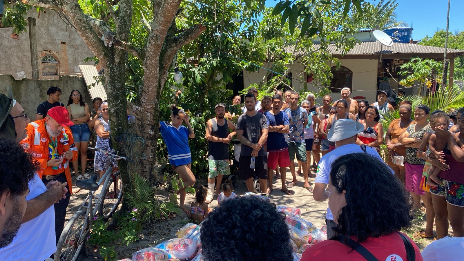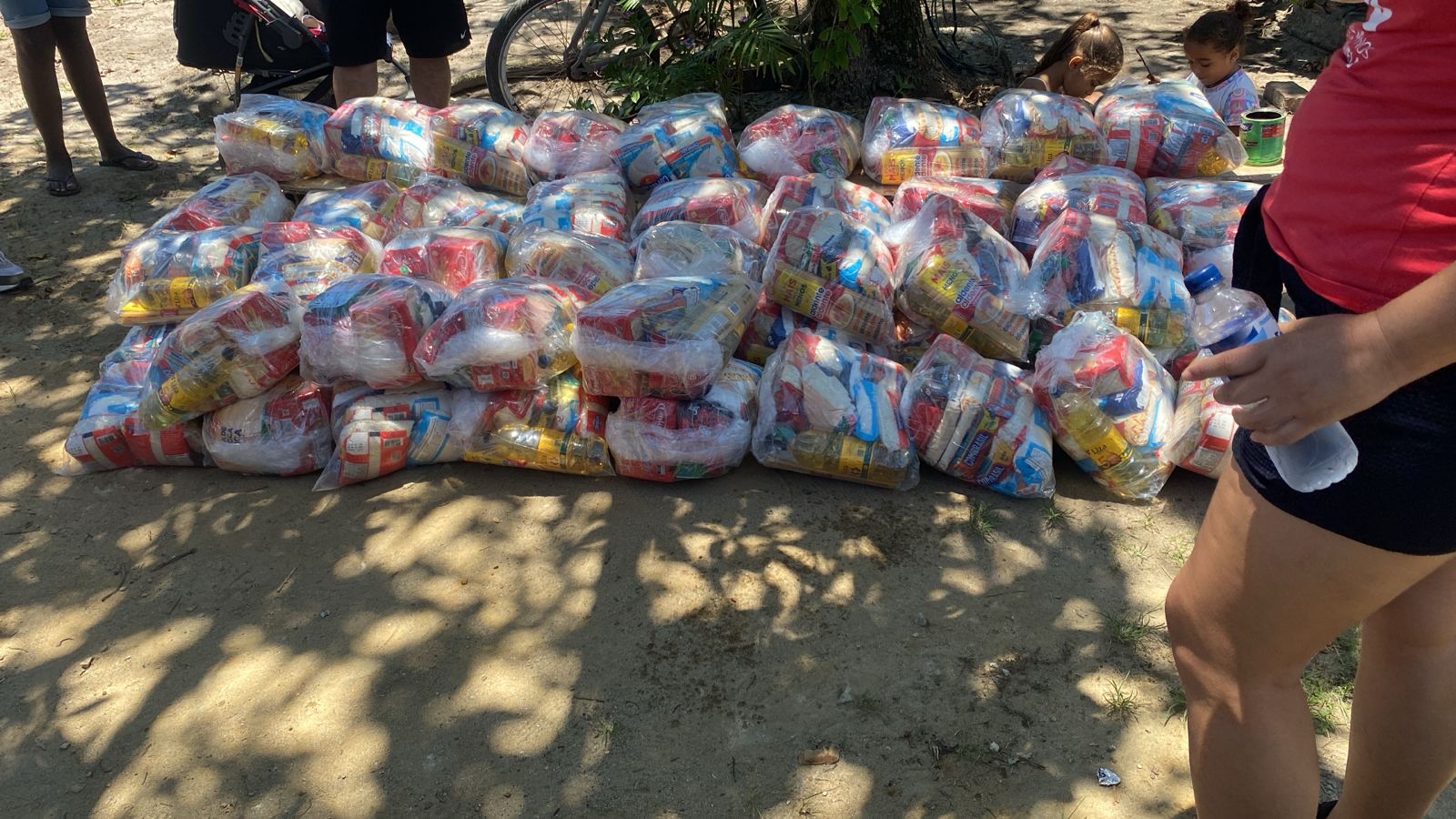 Entrega de cestas básicas pelos petroleiros em greve na comunidade Lagomar, em Macaé, na manhã de hoje