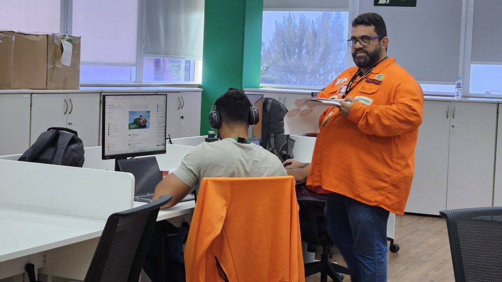 Diretores do Sindipetro-NF percorreram, nesta manhã, áreas administrativas da base de Imbetiba, em Macaé, para dialogar com a categoria petroleira sobre a luta pelo regramento do teletrabalho com participação dos trabalhadores. As lideranças sindicais também chamaram para outra atividade de diálogo, dessa vez de forma concentrada, no Portão da Praia Campista, às 13h30.