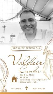 A missa de sétimo dia será celebrada amanhã, 6 de maio, às 19h, na Igreja de São Paulo Apóstolo, no bairro Siderópolis, em Volta Redonda.