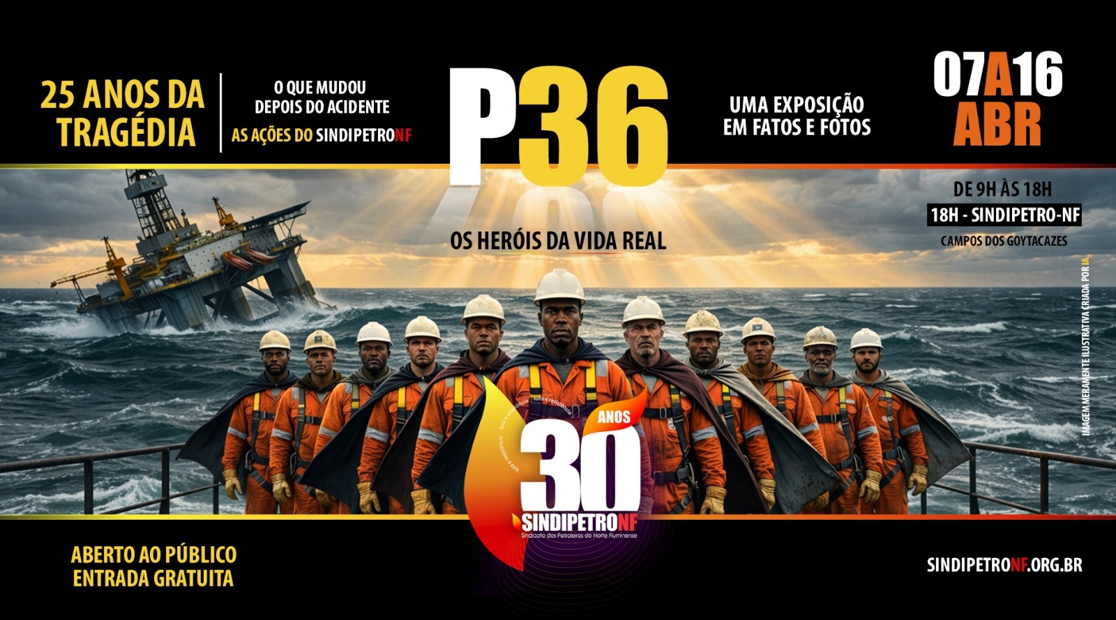O Sindipetro-NF realiza, entre os dias 7 e 16 de abril, na sede de Campos dos Goytacazes, a exposição “P-36: O que mudou depois do acidente”, que marca os 25 anos da tragédia com a plataforma P-36, ocorrida na Bacia de Campos em 2001 — um dos episódios mais marcantes da história da indústria do petróleo no Brasil.