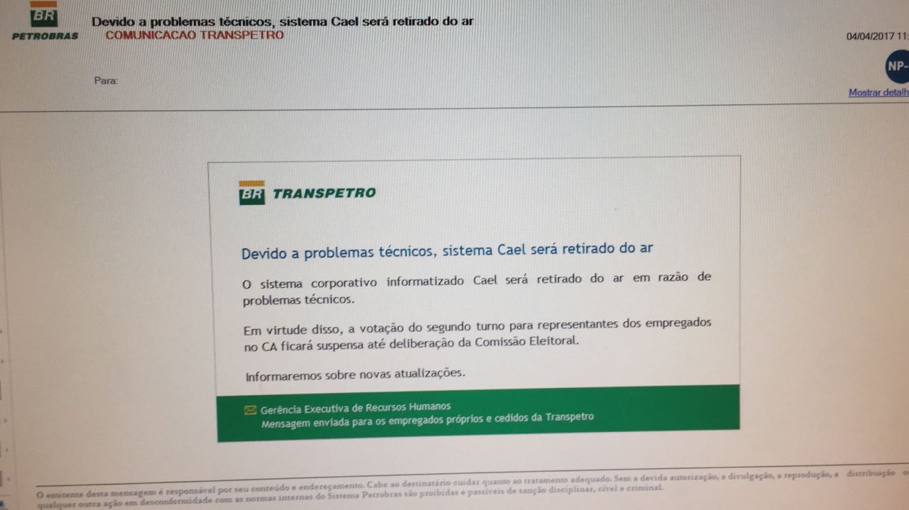 Alguns trabalhadores chegaram a gravar vídeos, acessando a plataforma com chaves de outros funcionários e senhas inexistentes, comprovando, assim, a possibilidade de fraudes na votação (assista no final da matéria). A Transpetro reagiu retirando o sistema do ar, alegando problemas técnicos, e informando a suspensão temporária do pleito.