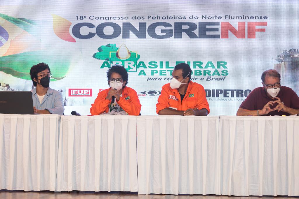 A mesa com o economista Carlos Takashi e o médico Ricardo Duarte foi moderada pela diretora do Sindipetro-NF, Jancileide Morgado, e pelo também diretor Alexandre Vieira, que coordena o Departamento de Saúde da entidade.