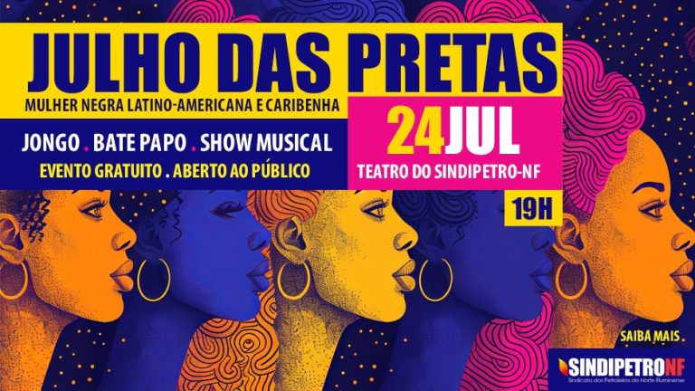 No dia 24 de julho, às 19h, a sede do Sindipetro-NF em Macaé será palco de um evento especial em celebração ao Dia da Mulher Negra, Latino-Americana e Caribenha, data dedicada à valorização e à luta das mulheres negras em todo o continente. A programação inclui uma roda de conversa com mulheres inspiradoras e o lançamento de obras literárias que dão voz à experiência e à resistência feminina negra.