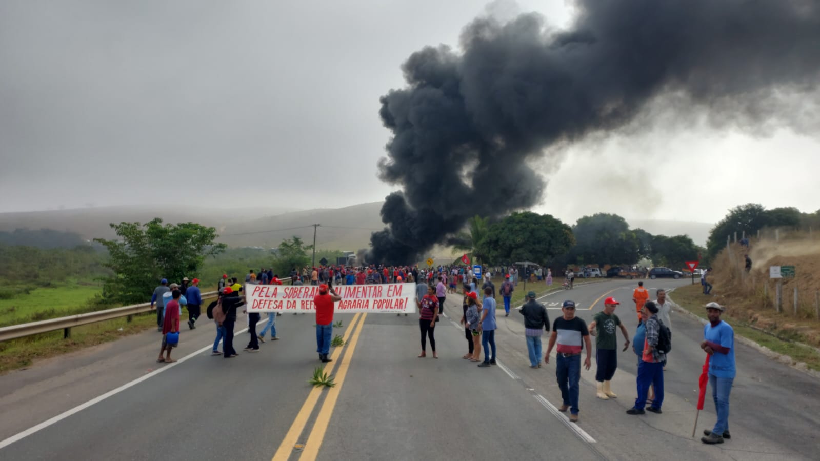 Militantes do MST fecham BR 101 em Campos para reivindicar Reforma Agrária