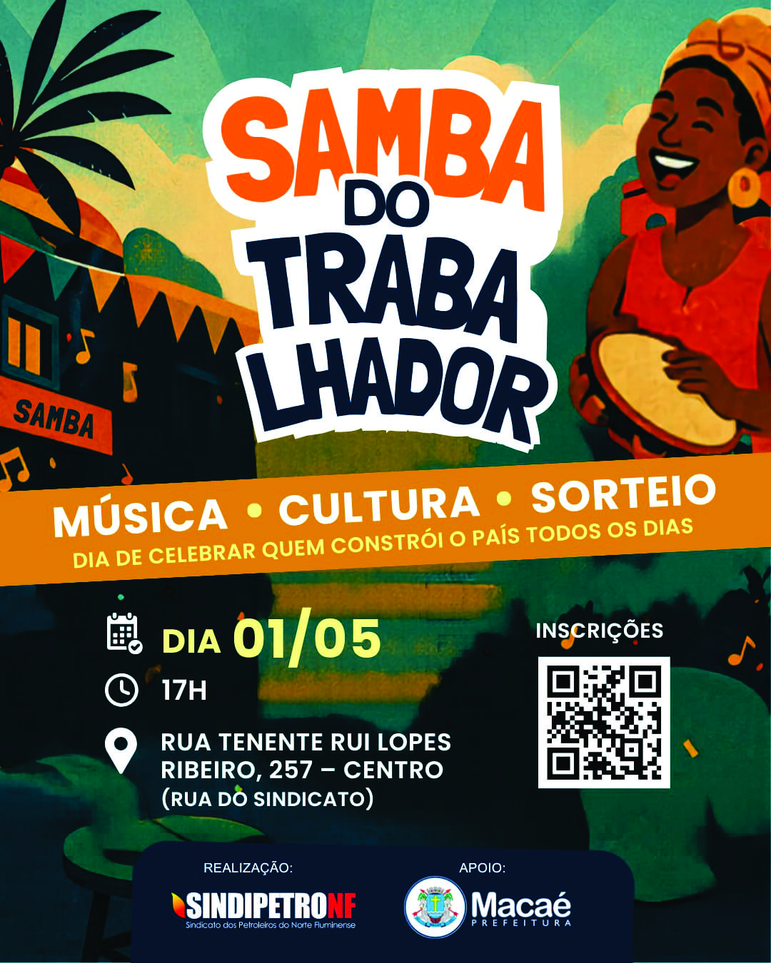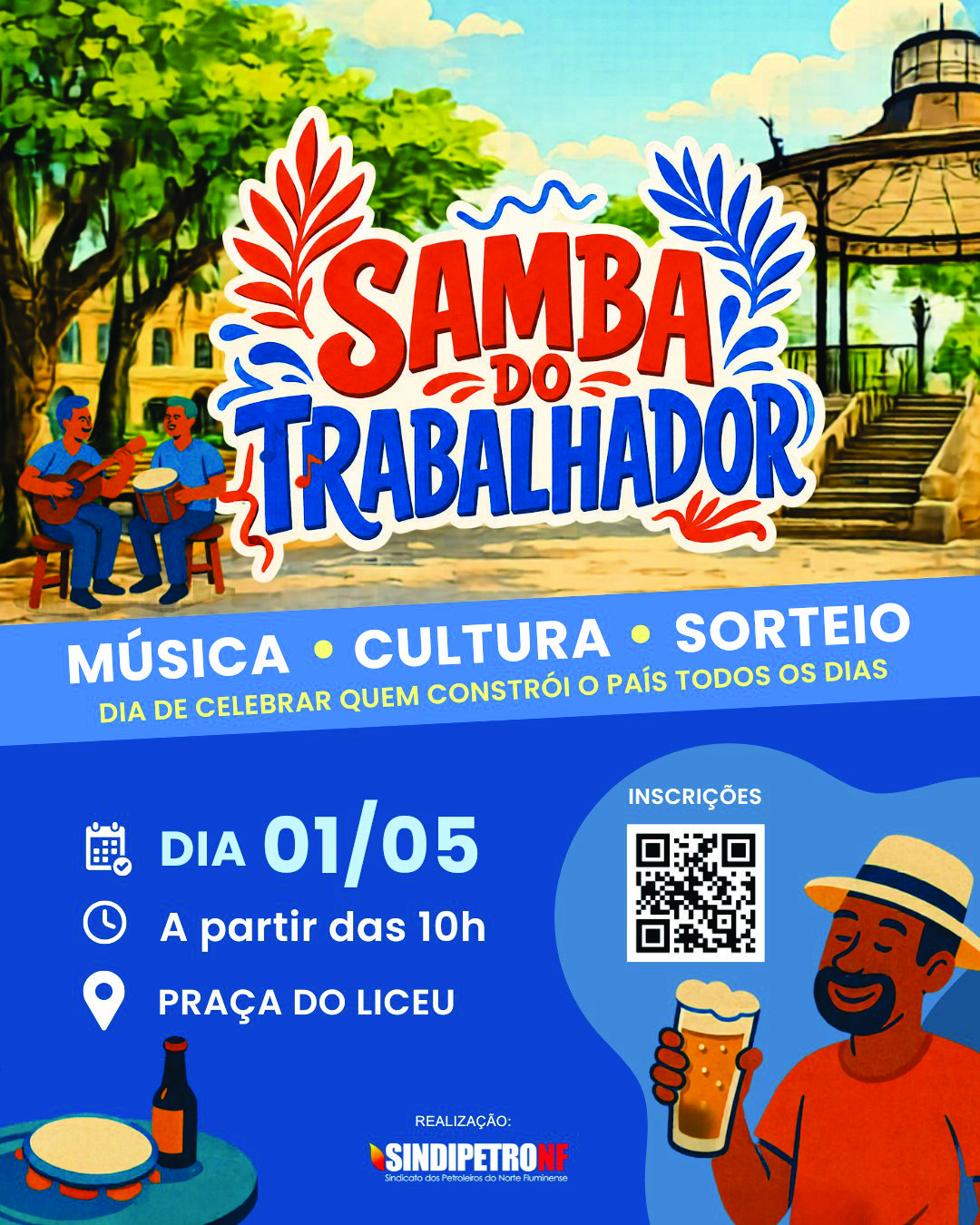 O Sindipetro-NF vai marcar o Dia do Trabalhador nas duas cidades onde mantém sedes com eventos especiais de samba e conscientização nesta sexta-feira (01). Em Macaé, a comemoração será realizada na rua do Sindipetro-NF (Rua Tenente Rui Lopes Ribeiro, 257), que será fechada a partir das 17h especialmente para receber trabalhadores, trabalhadoras e suas famílias em um grande ato político-cultural de celebração e resistência. Em Campos dos Goytacazes, a celebração acontece na Praça do Liceu, a partir das 10h, com edição especial do tradicional Samba na Praça.