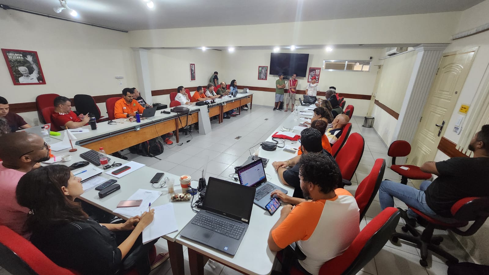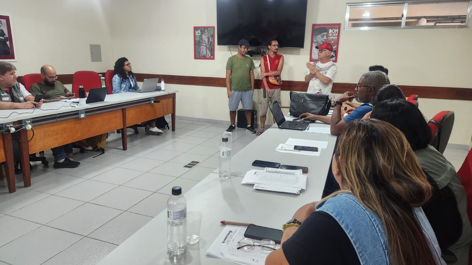 Parte dos estudantes que participam do projeto de preparação para o Encceja, realizado pelo Núcleo de Educação Popular Delso Gomes (NEP-Delso Gomes), estiveram na reunião da diretoria da entidade, na última terça, 18, para apresentarem informações sobre o andamento dos trabalhos.