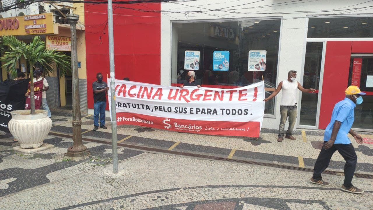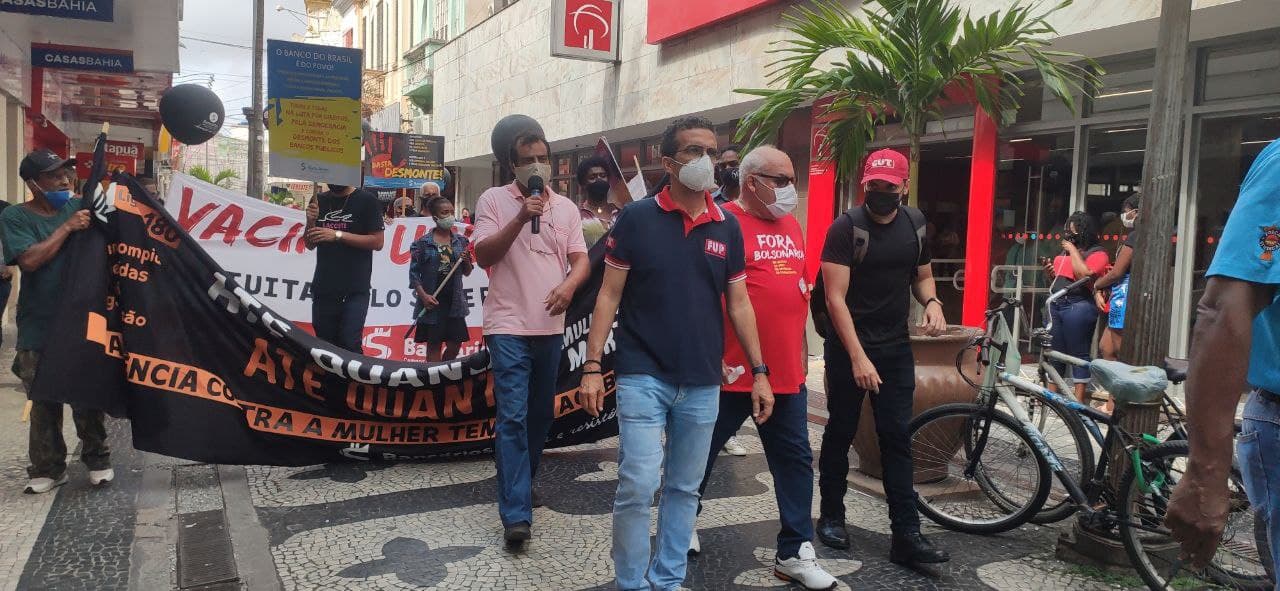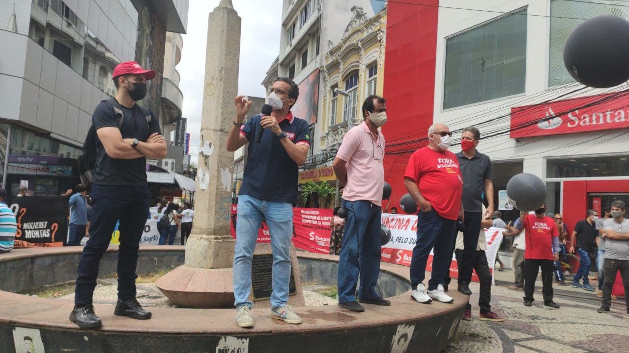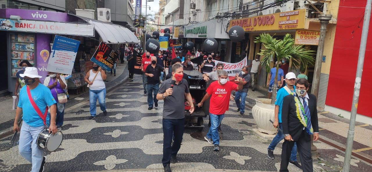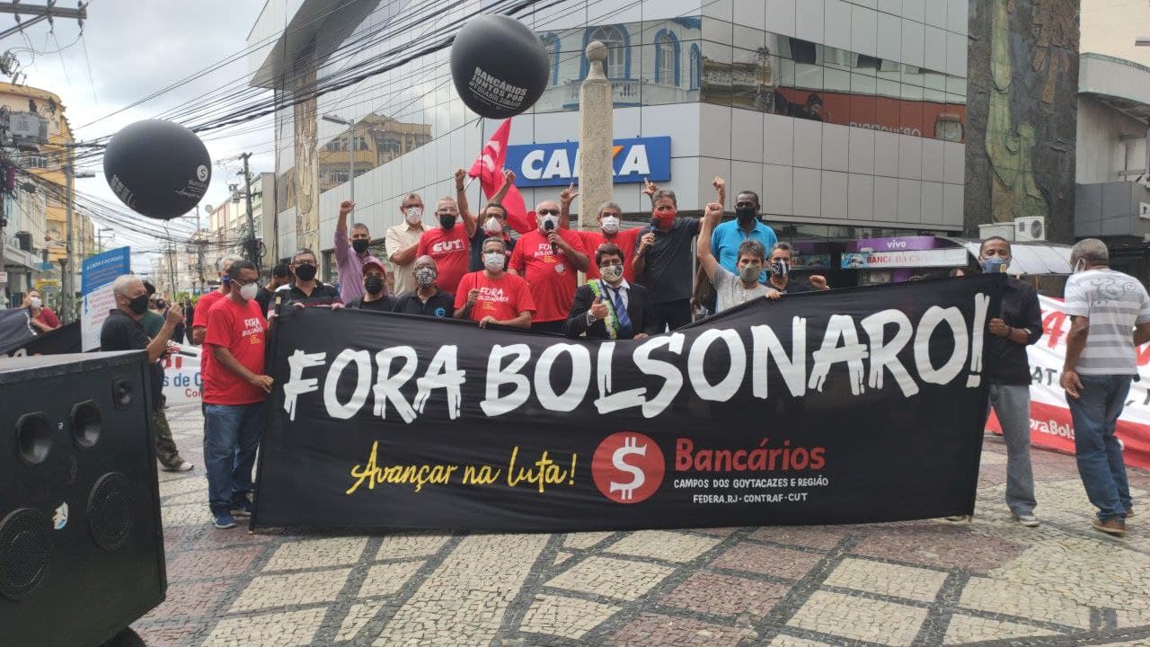 Ato público nesta manhã no Calçadão de Campos dos Goytacazes reuniu representantes dos sindicatos dos Bancários, Trabalhadores em Saneamento e Petroleiros, em um “esquenta” para os protestos de amanhã pelo impeachment do presidente Jair Bolsonaro. O município terá sua manifestação “Fora Bolsonaro” a partir das 9h, na Praça São Salvador.