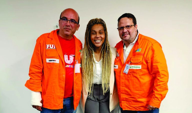 [Foto em destaque: Diretores do Sindipetro-NF, Alessandro Trindade e Eider Siqueira, com a deputada Dani Balbi (PCdoB)]