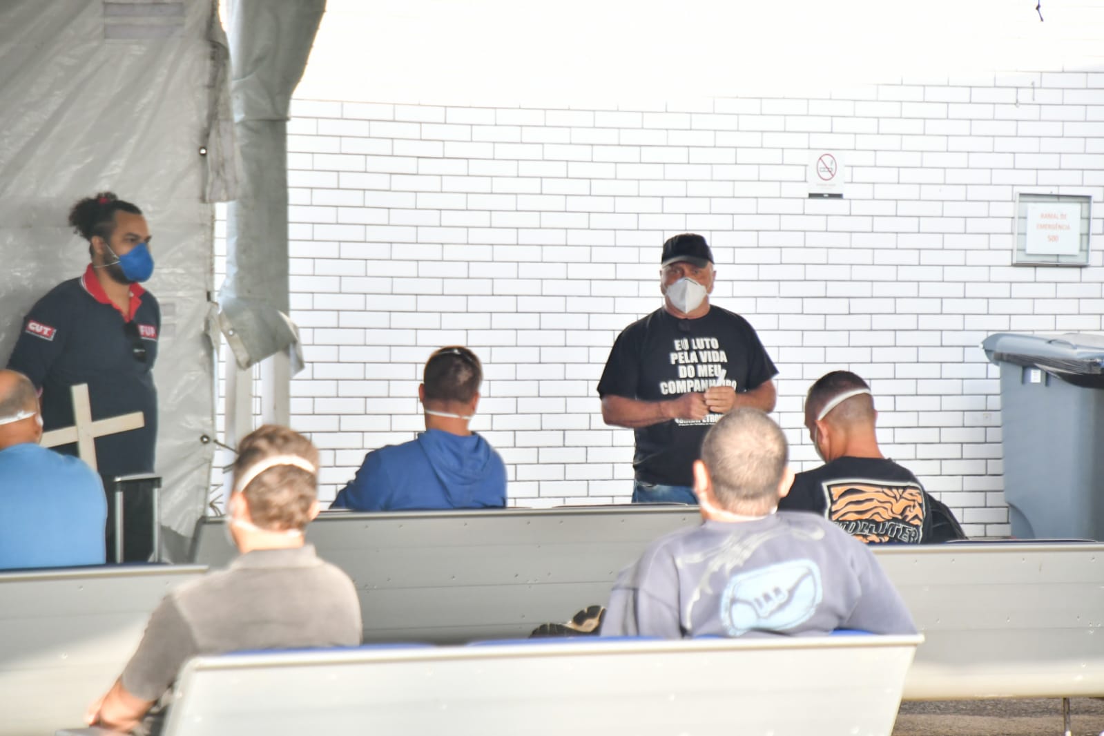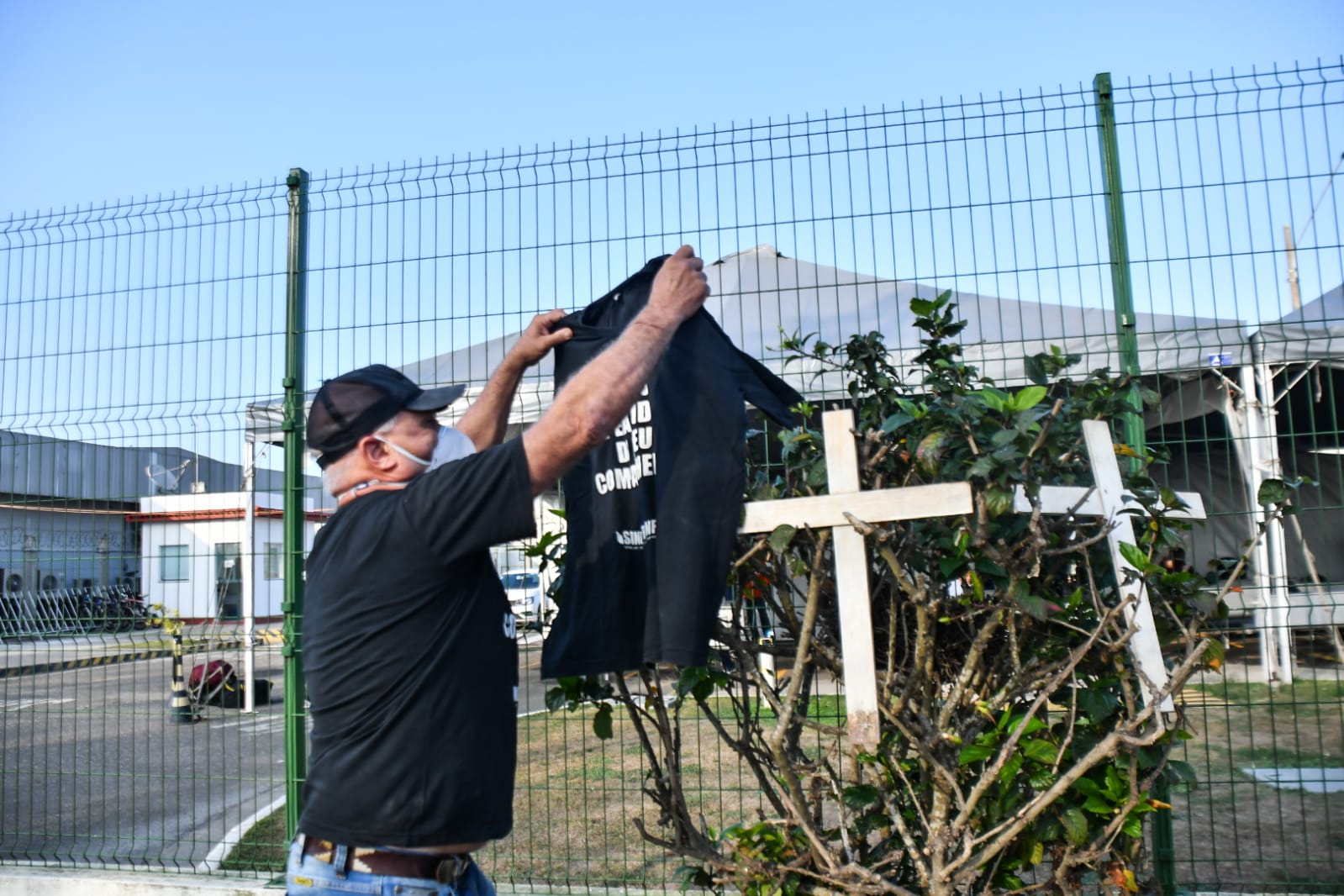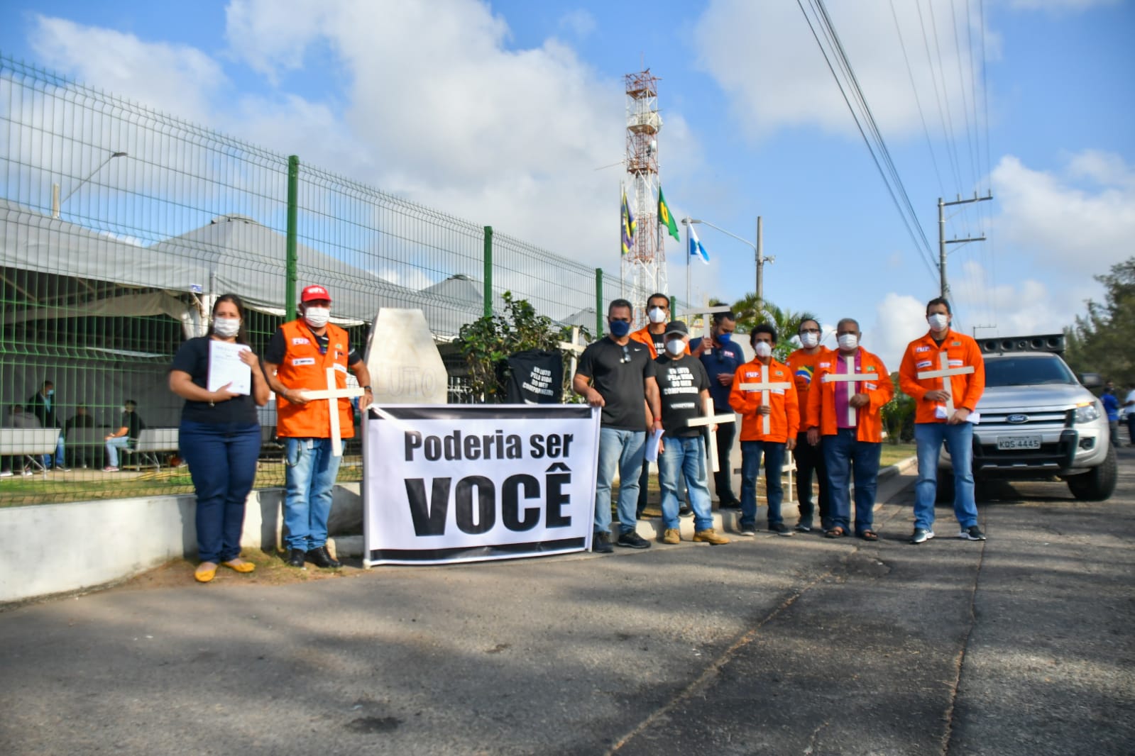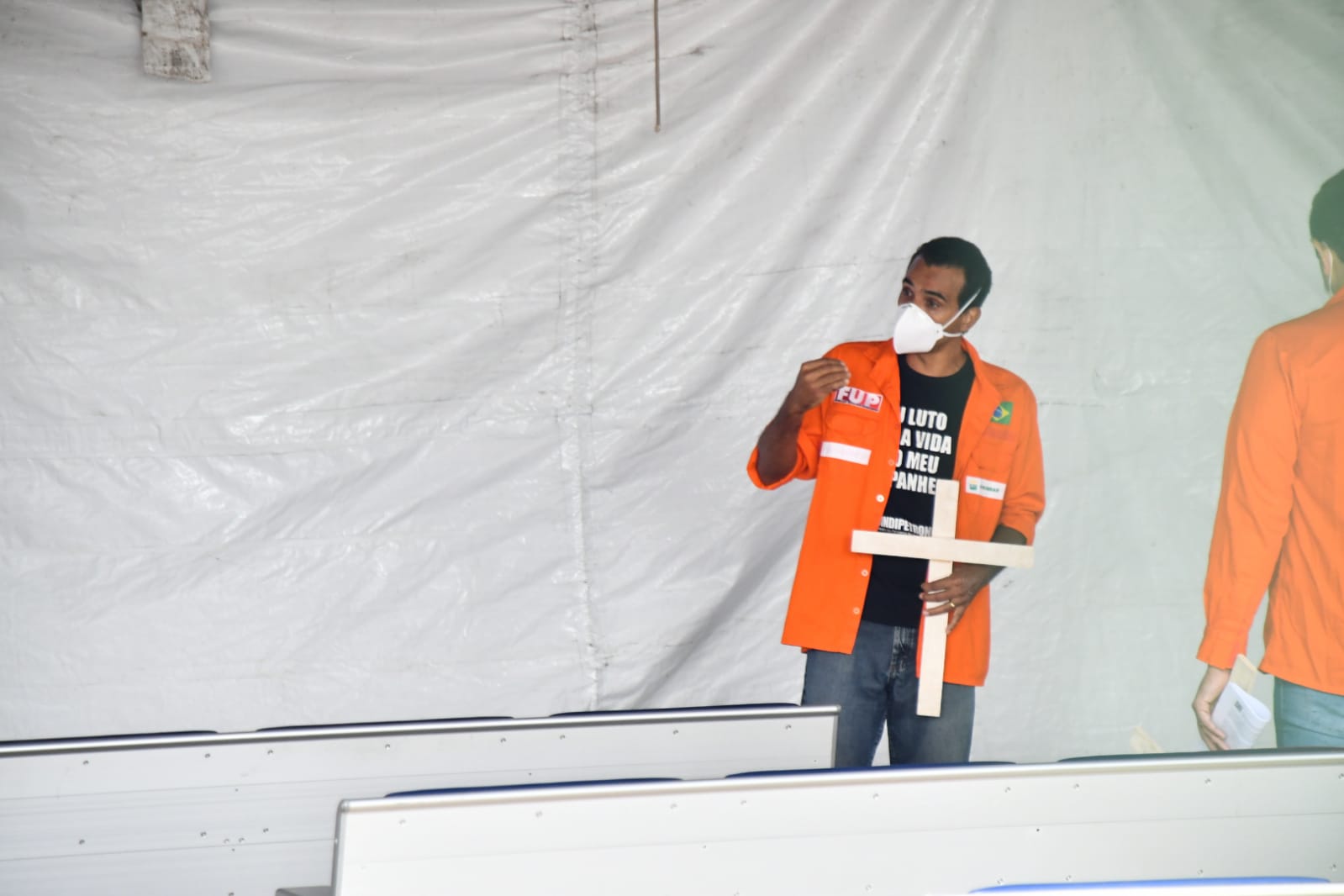 O ato no Farol começou nas primeiras horas da manhã de hoje. Sindicalistas fincaram cruzes nos canteiros próximos à entrada do heliporto e estenderam faixas. Uma delas alerta o trabalhador que “poderia ser você”, conscientizando sobre a necessidade de todos priorizarem a luta pela segurança no trabalho.