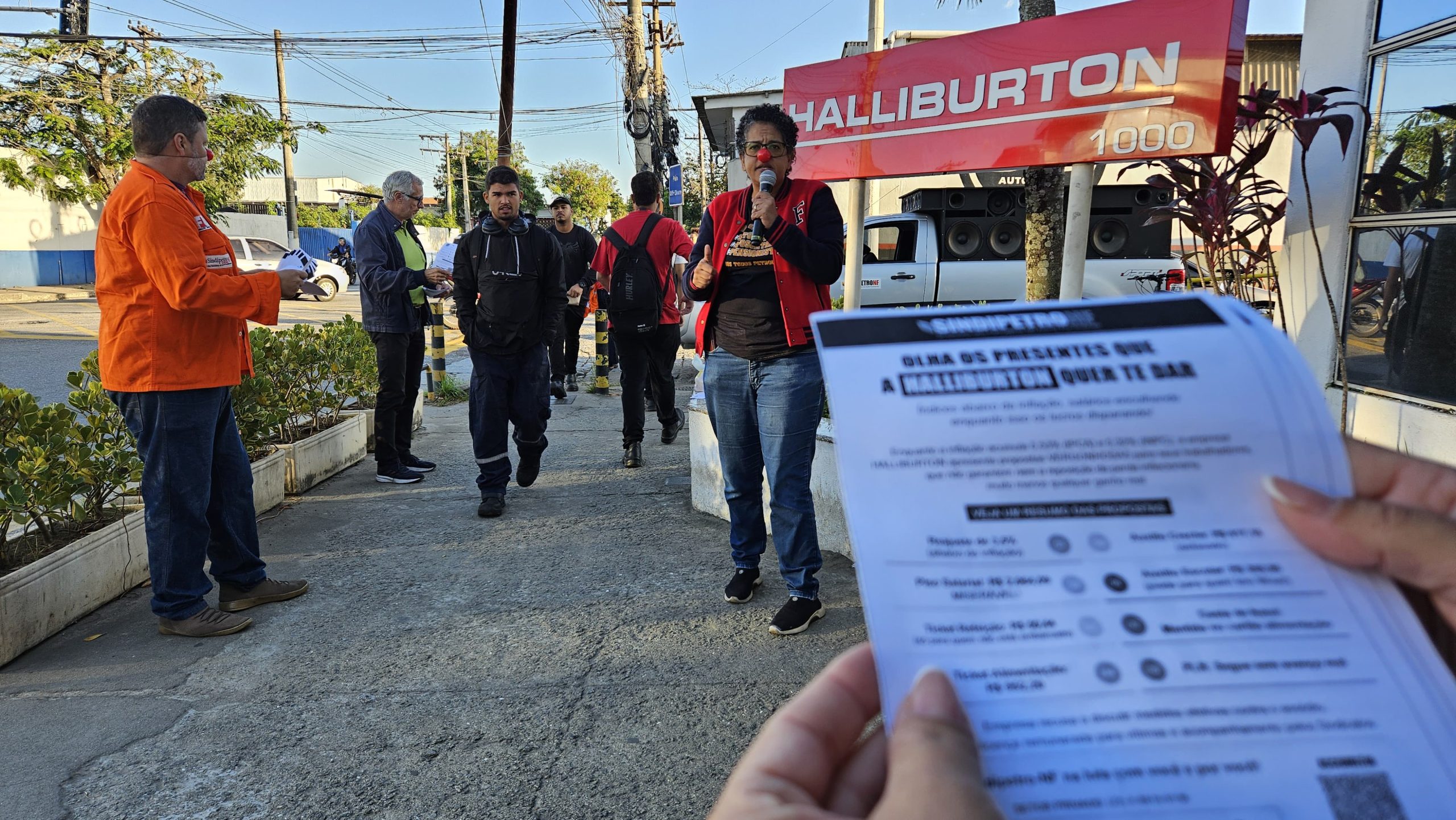 Diretores do Departamento de Trabalhadores do Setor Privado do Sindipetro-NF realizaram, no início da manhã de hoje, panfletagem na entrada do expediente na Halliburton, em Macaé. O sindicato está reforçando o chamado para a participação da categoria em assembleia online, também hoje, às 15h.