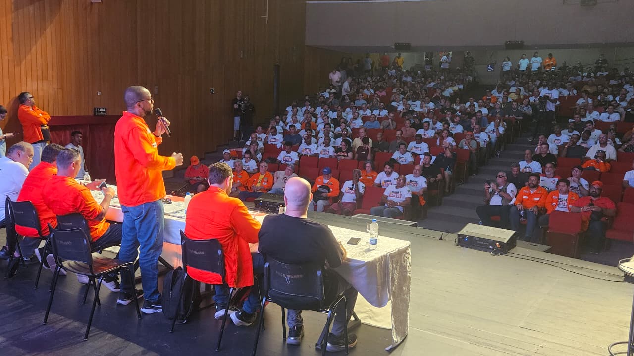A categoria assistiu a uma apresentação (disponível no final da página) sobre as conquistas do Acordo Coletivo nesta Campanha Reivindicatória, organizada pelo economista do Dieese, Cloviomar Cararine, e participou de debates e esclarecimentos.