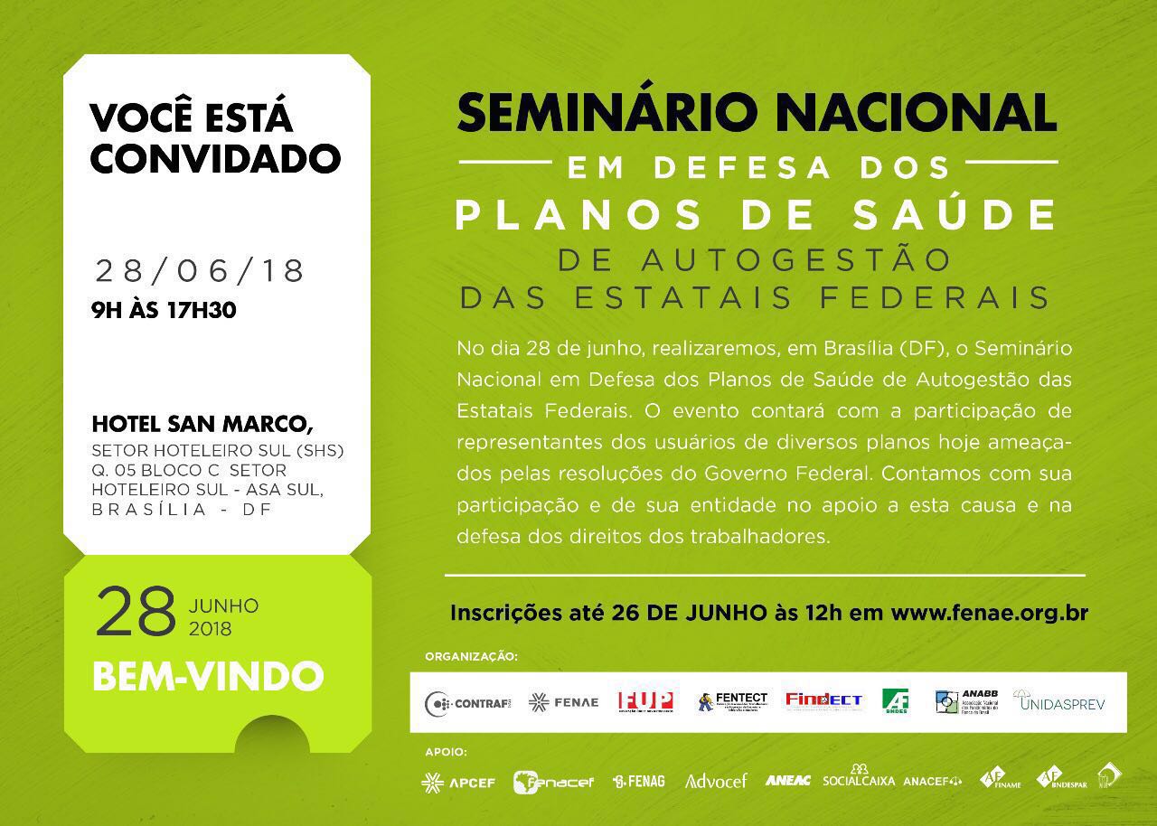 Daí a importância do seminário unificar ações dos trabalhadores que visem o impedimento desta Resolução. As inscrições para o evento ainda podem ser feitas pelo site www.fenae.org.br/seminarioplanosdesaudeestatais até 12h desta terça-feira, 26 de junho.
