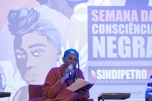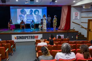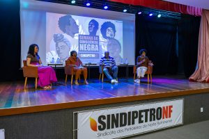 Na noite da última terça-feira, 18 de novembro, o auditório do Sindipetro-NF recebeu um público para o encontro “Escrevivências Negras: Memória e Resistência – Encontro de escritores negros”, realizado em parceria com a Secretaria de Políticas de Promoção da Igualdade Racial de Macaé. O evento reuniu os escritores Mestre Lago, Te Costa e Raila Maciel, sob mediação da jornalista e escritora Conceição de Maria Rosa, promovendo uma noite de partilha de histórias, trajetórias autorais e celebração da palavra preta.