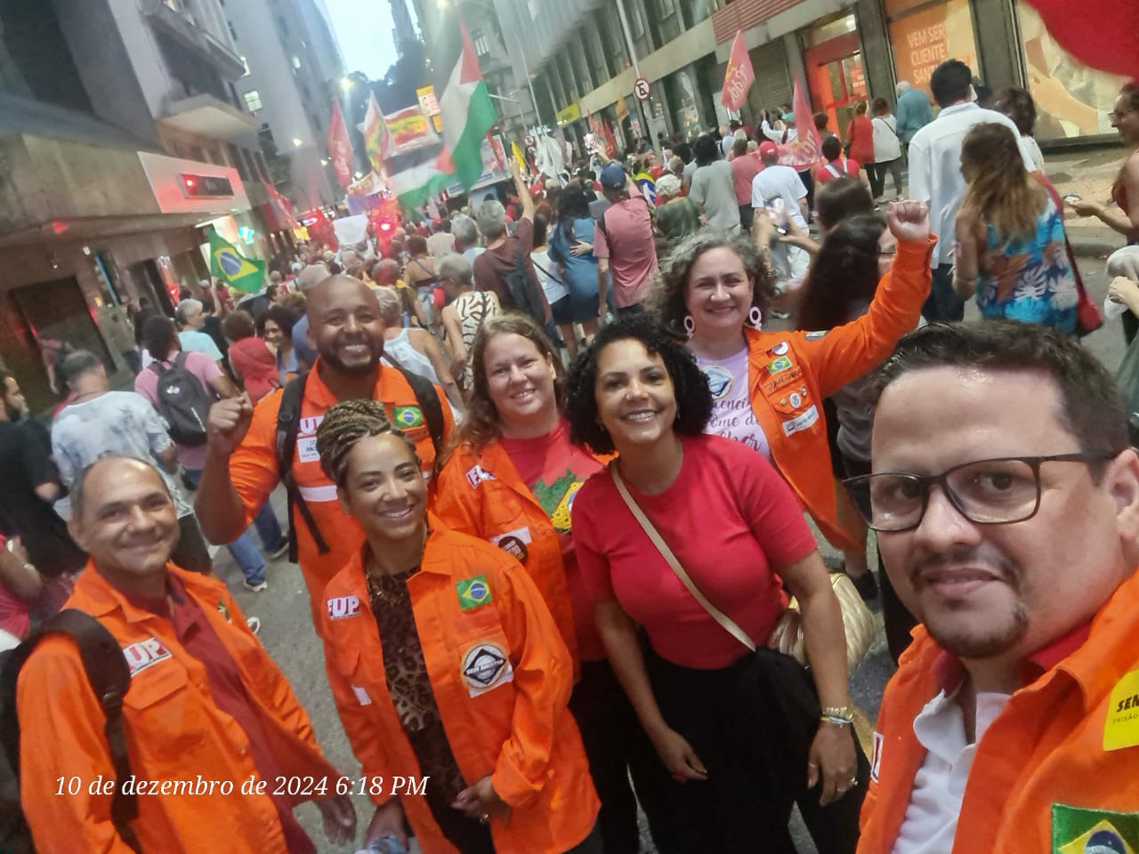 Realizada no Dia Internacional dos Direitos Humanos, a manifestação também cobrou uma série de pautas de interesse da classe trabalhadora, como o fim da escala 6×1, com redução da jornada de trabalho, sem redução de salários; reforma tributária, com taxação das grandes fortunas; redução da taxa de juros; pela retirada do PL do estupro; valorização do salário mínimo e das aposentadorias; contra o genocídio da juventude negra e por garantia de investimentos na saúde e na educação, sem redução de gastos públicos.