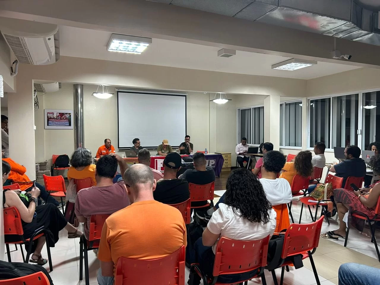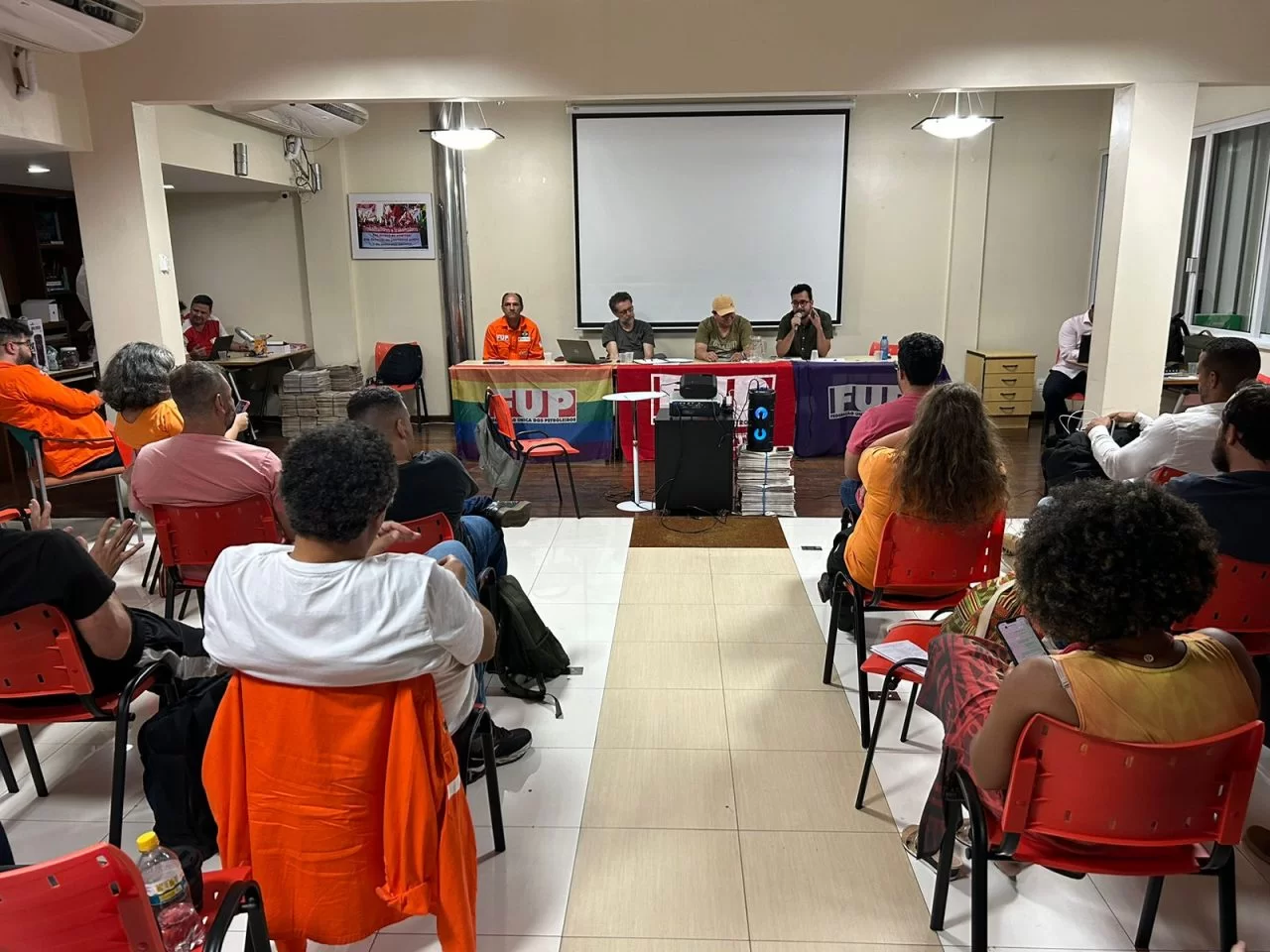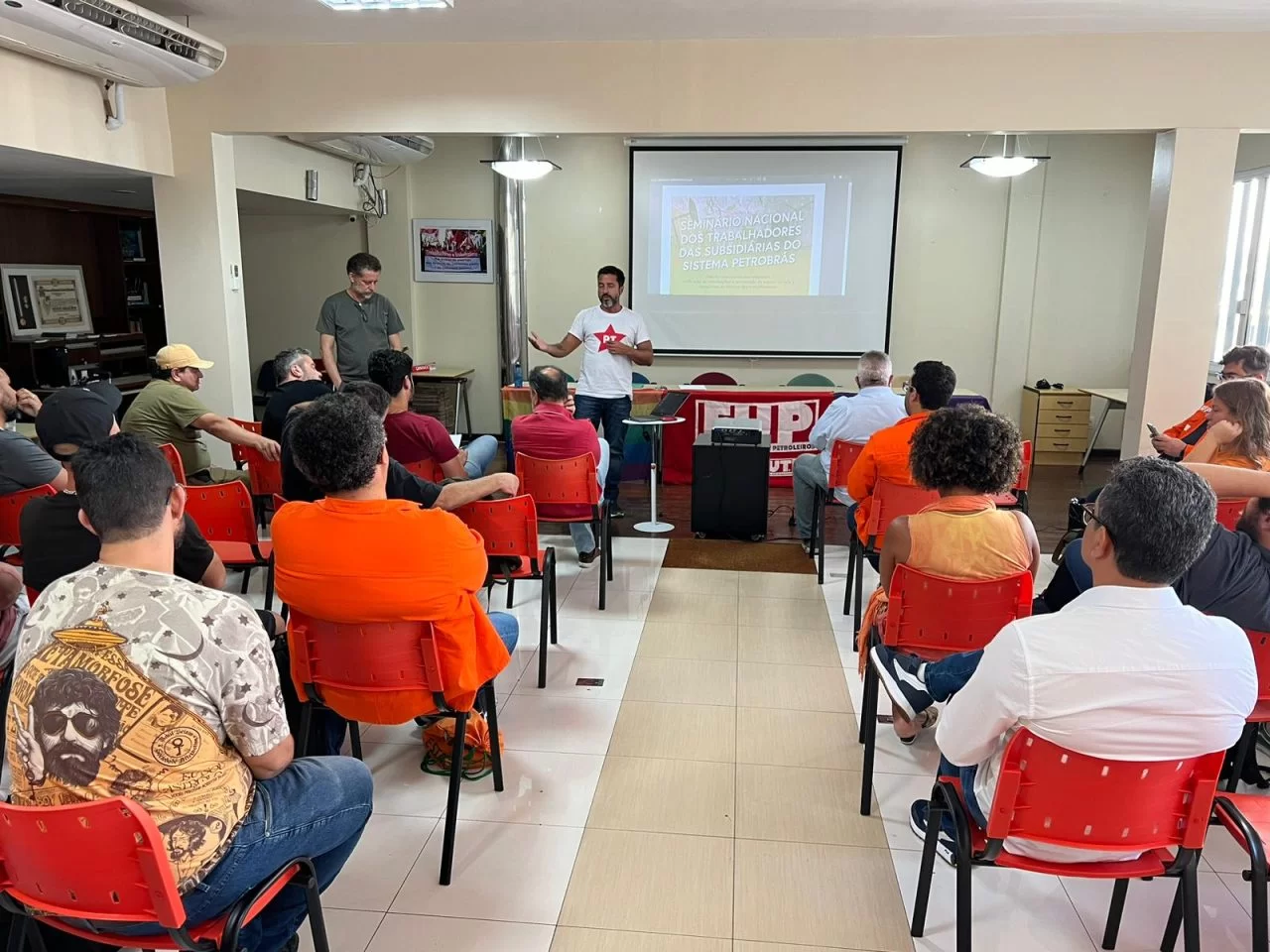 Organizado pela FUP e por seus sindicatos, o Seminário Nacional dos Trabalhadores das Subsidiárias do Sistema Petrobrás reúne petroleiros de diversos terminais da Transpetro, das usinas da PBio (Candeia/BA, Montes Claros/MG e Quixadá/CE), da Termobahia e da TBG, além de ex-empregados da Araucária Nitrogenados, que estão em processo de negociação para retorno à empresa, a partir da reabertura da Fafen Paraná. Do Sindipetro-NF participaram os diretores Matheus Nogueira, Eider Siqueira e Bárbara Bezerra.