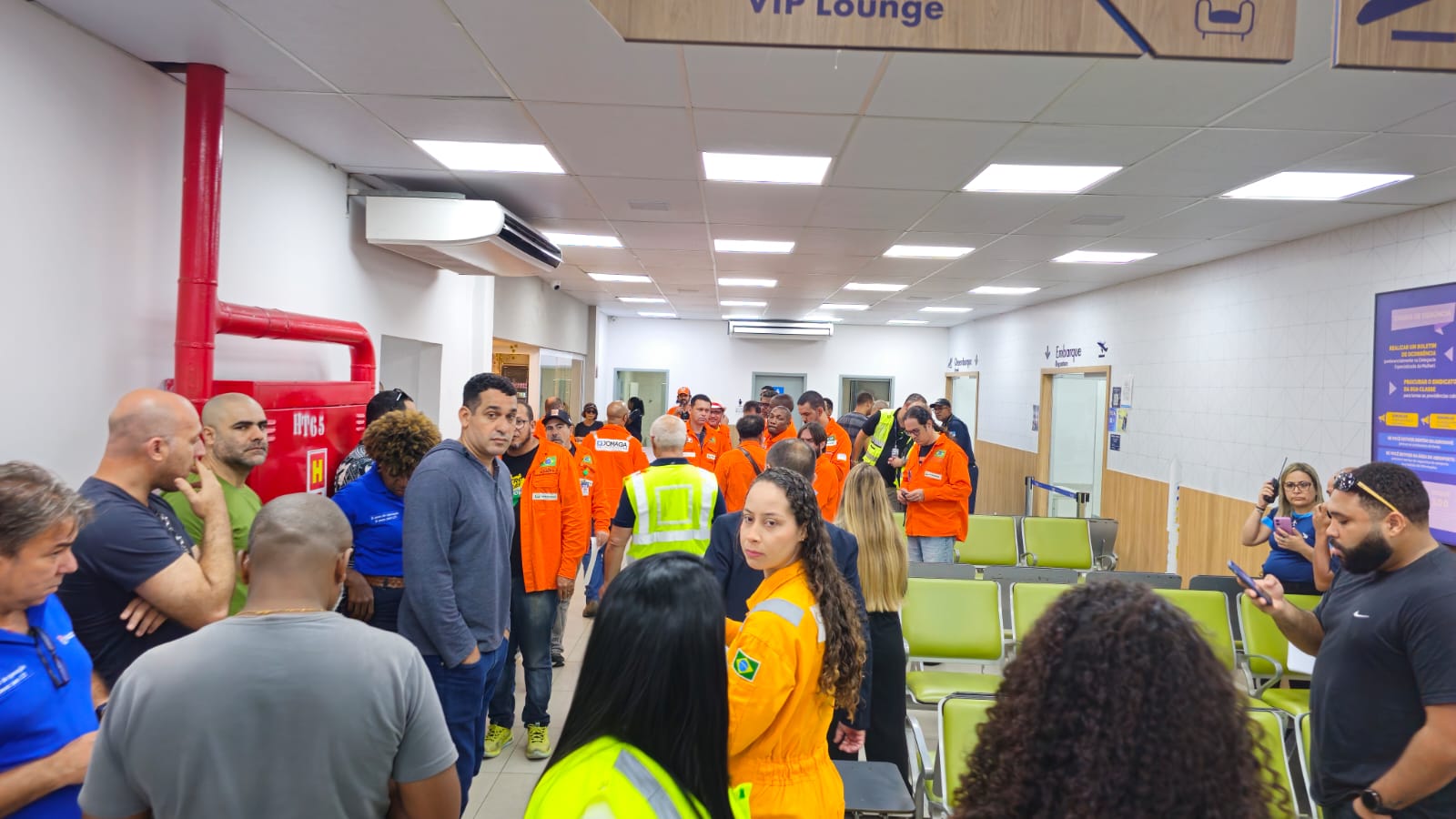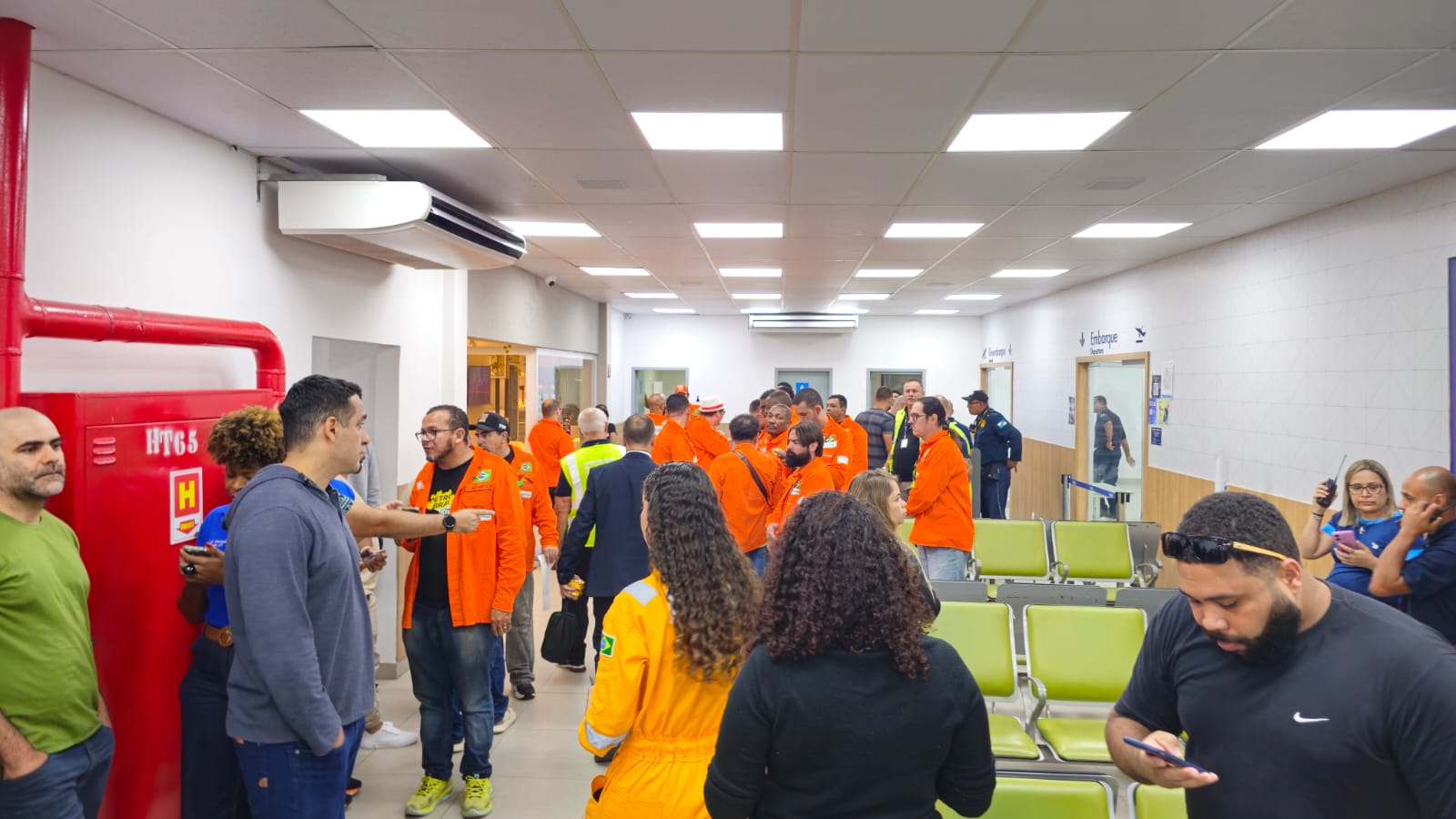 Lideranças sindicais de entidades ligas às duas federações petroleiras no país, a FUP (Federação Única dos Petroleiros) e a FNP (Federação Nacional dos Petroleiros), entre elas o Sindipetro-NF, realizaram na manhã de hoje um trancaço no Aeroporto de Jacarapaguá, no Rio, por onde também embarcam petroleiros e petroleiras que atuam em unidades marítimas da costa fluminense.