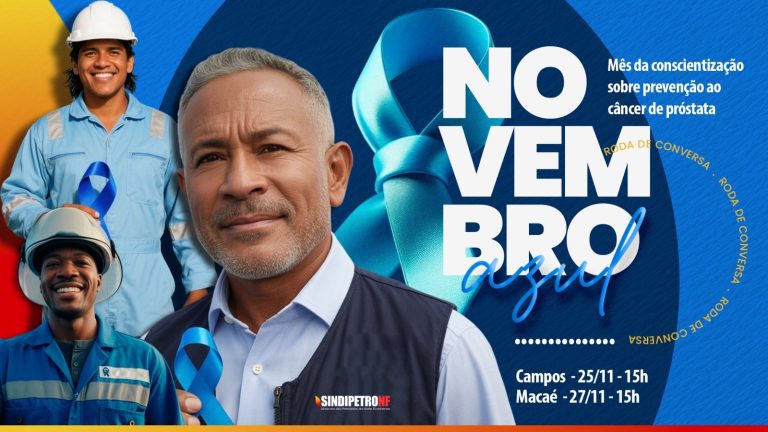 O Sindipetro-NF realiza, neste mês de conscientização sobre a saúde do homem, duas atividades especiais do Novembro Azul, reforçando a importância da prevenção e do diagnóstico precoce do câncer de próstata e de outras doenças que acometem a população masculina. As iniciativas acontecem em Campos dos Goytacazes e Macaé, com a participação de profissionais convidados.