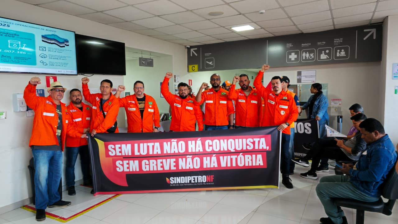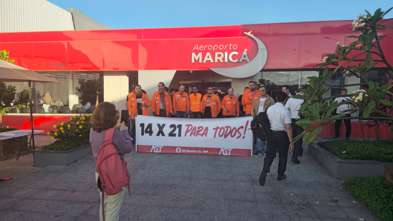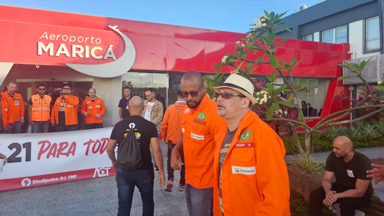 “Fizemos um ato trancando o aeroporto de Maricá, ficamos lá até 8h20. Por conta dos desimplantes, mas, também, pelo acordo coletivo, pelo 14×21 para todos e por mais segurança, mais saúde nas instalações da Petrobras”, explica Johnny Souza, coordenador do Departamento de Comunicação do Sindipetro-NF.