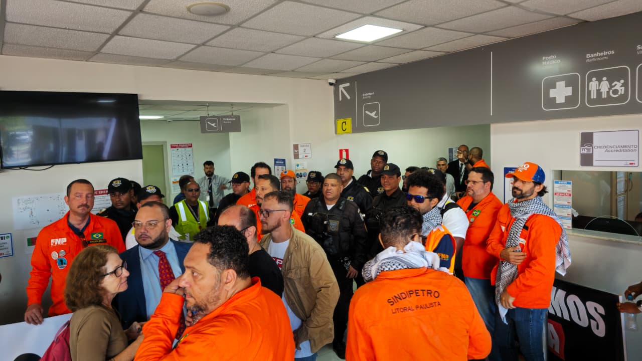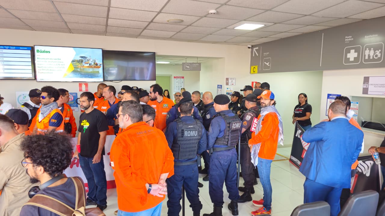 Dirigentes de Sindipetros com bases offshore — Norte Fluminense, Espírito Santo, Rio de Janeiro, Amazonas/Para e Litoral Paulista — realizaram, na manhã de hoje, um trancaço no Aeroporto de Maricá (RJ), em protesto contra desimplantes arbitrários que estão feitos pela gestão da Petrobrás. A categoria petroleira também está em Campanha Reivindicatória, buscando avanços no Acordo Coletivo de Trabalho.