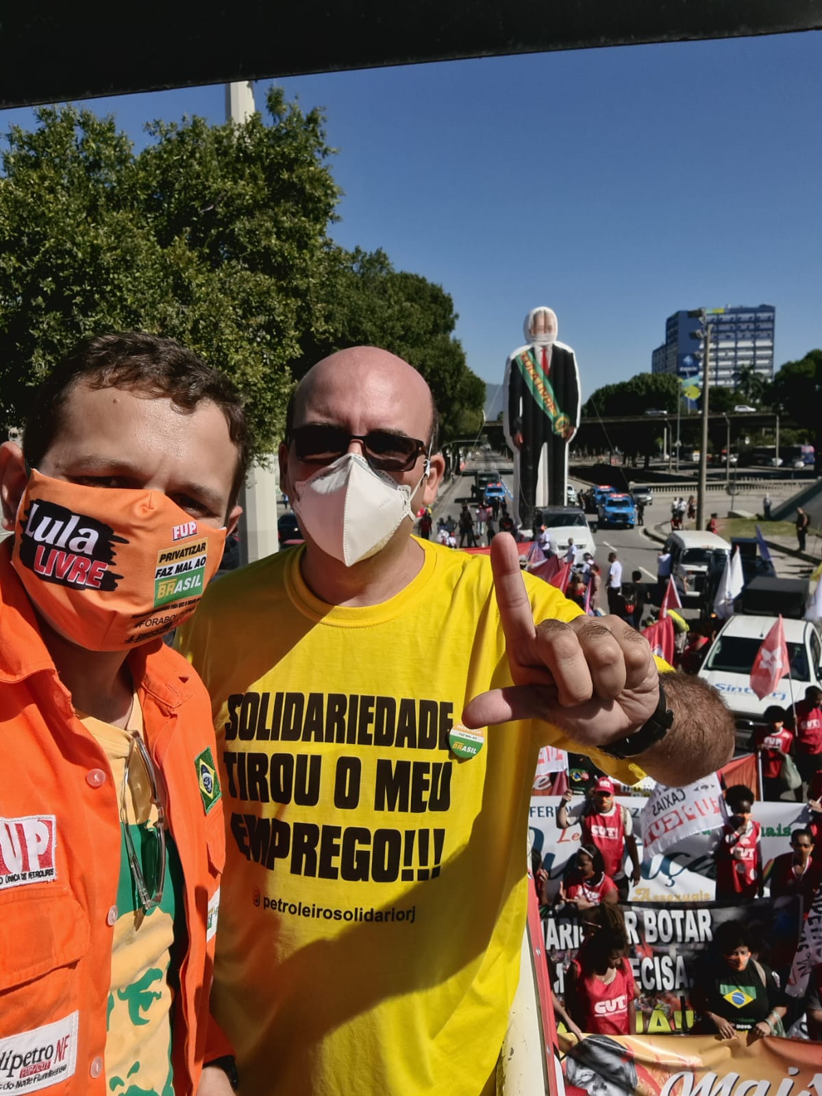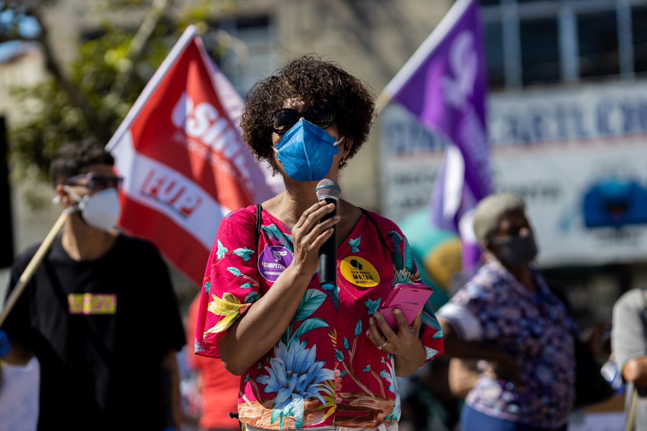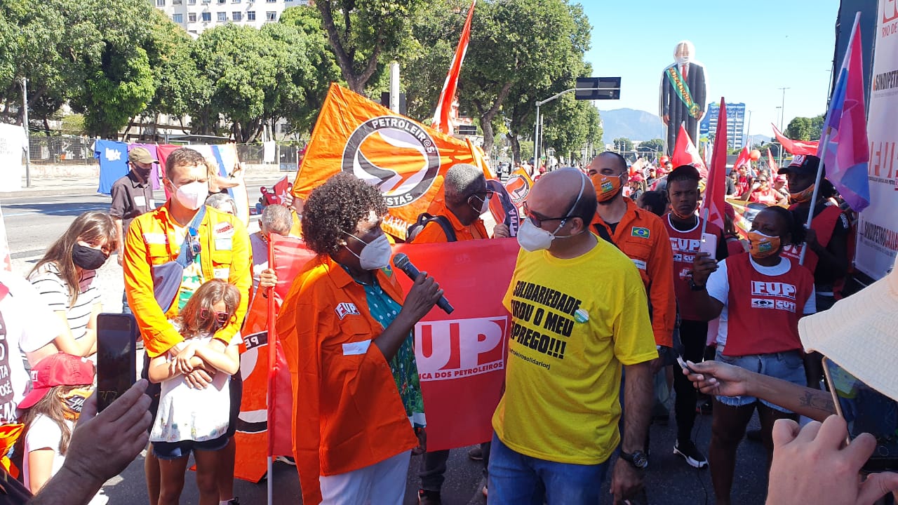 “Eu queria falar para o petroleiro, a petroleira, que não foi para a rua hoje, nesse dia em que a gente está aqui lutando para defender também o emprego de cada trabalhador, cada trabalhadora, próprio ou terceirizado da Petrobrás. Não podemos ficar sentados no sofá assistindo a toda uma destruição da nossa empresa. Nós temos que ir para a rua fortalecer os sindicatos e aqueles que lutam por um país mais justo”, disse Tezeu.