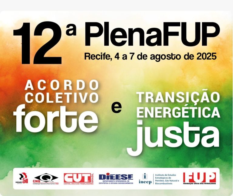 Com o tema “Acordo Coletivo Forte e Transição Energética Justa”, a 12ª Plenafup tratará de questões estruturantes para as trabalhadoras e os trabalhadores do setor petróleo, como a construção de um Pacto Global que garanta direitos, segurança, diversidade e responsabilidade social em todas as regiões em que a Petrobrás atue e uma proposta de transição energética que seja de fato justa, participativa e inclusiva.