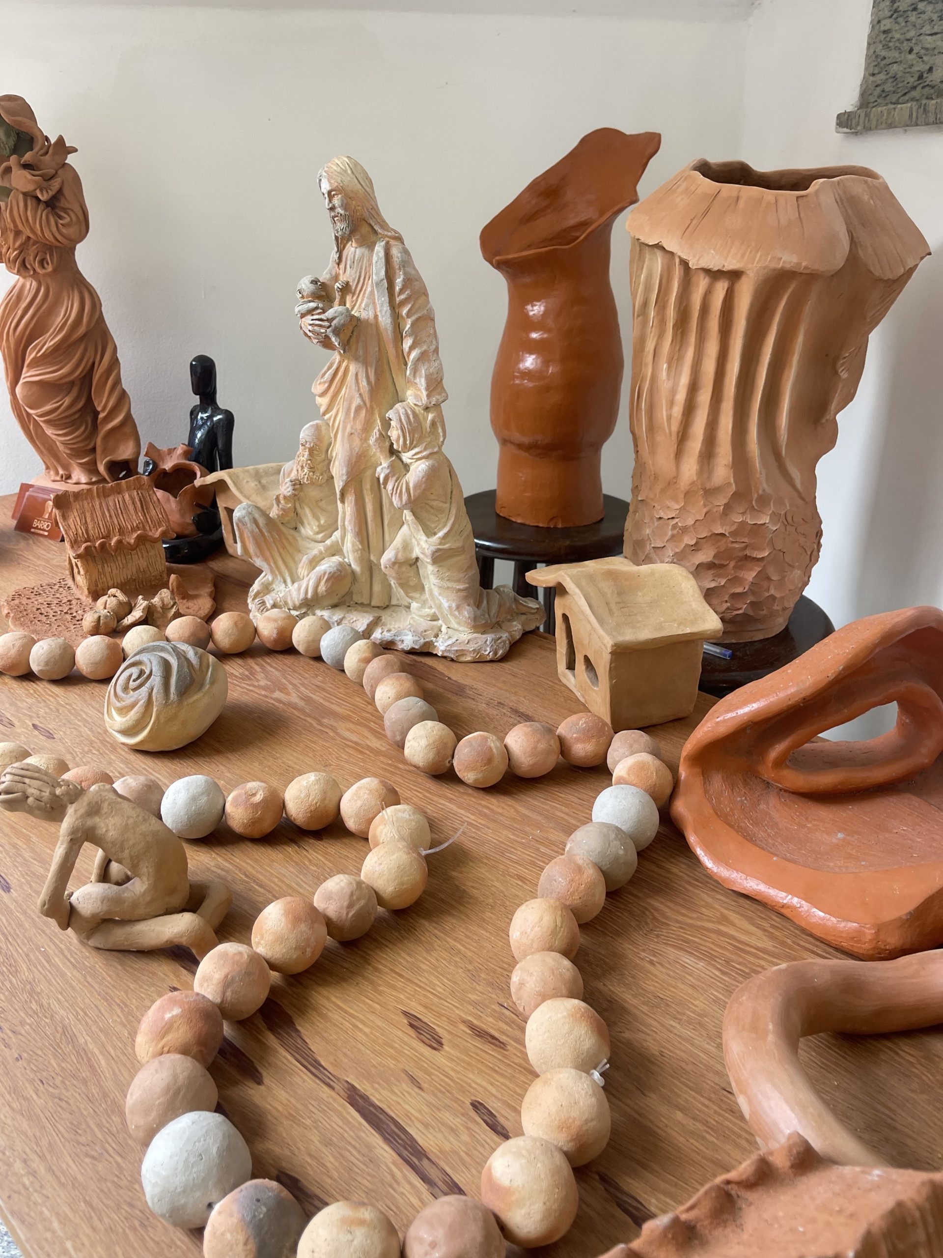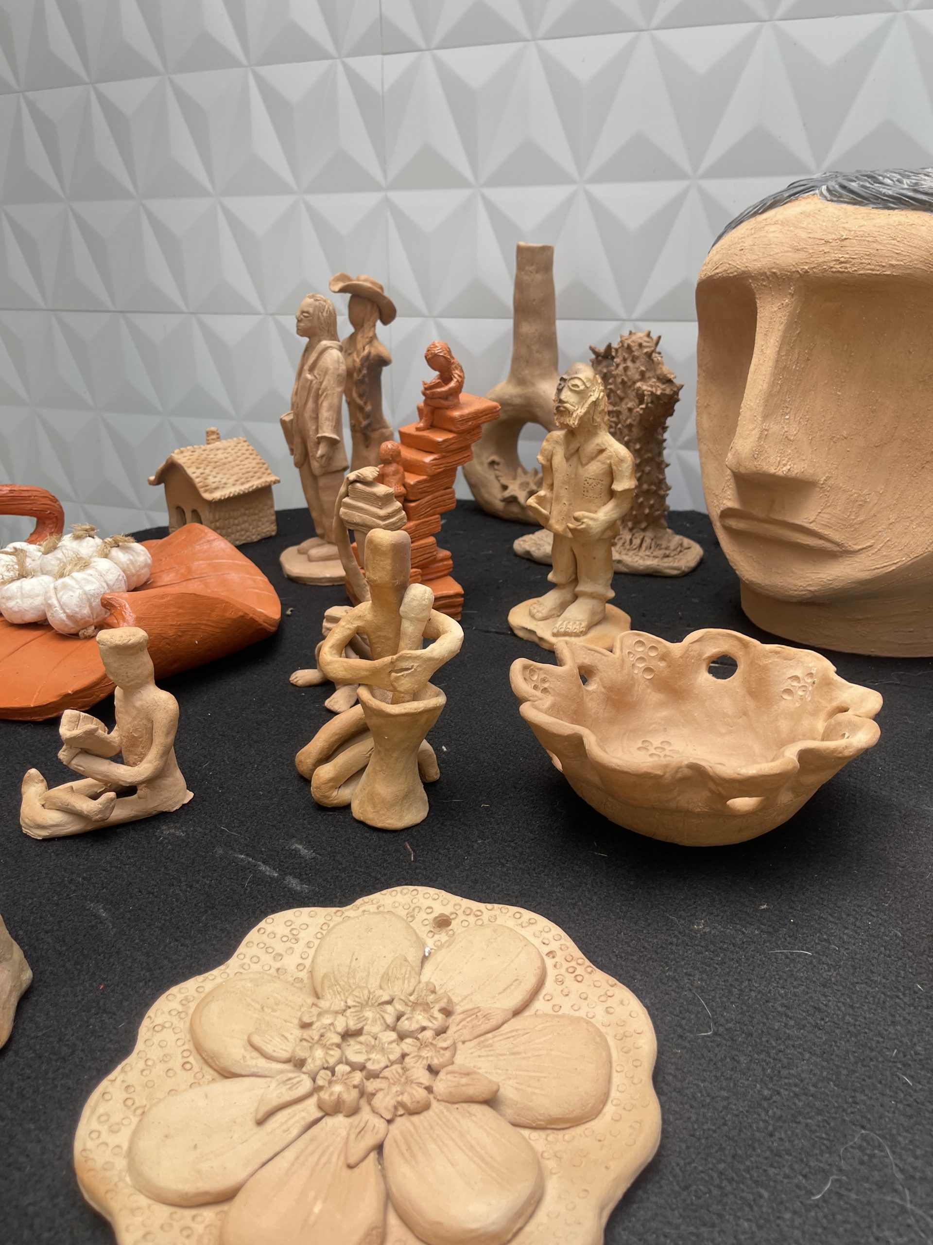 Acompanhado da aluna Vera Lúcia dos Santos, 49 anos, também autora de algumas das peças expostas, Daniel explica que é “agraciado” por amar o que faz. “Preciso do dinheiro? Sim, como todo mundo. Mas digo para você que eu amo. Às vezes falam comigo: tem um lugar para fazer um trabalho, é um lugar carente, não tem como fazer, mas eu tenho que fazer a minha parte”, conta.